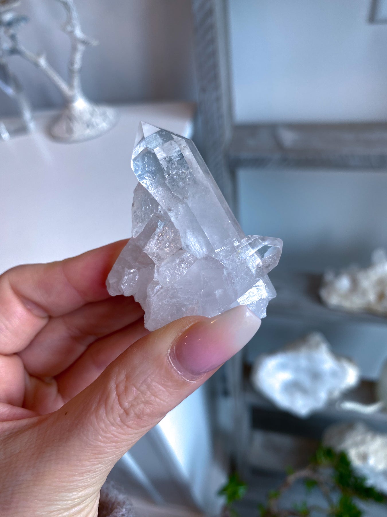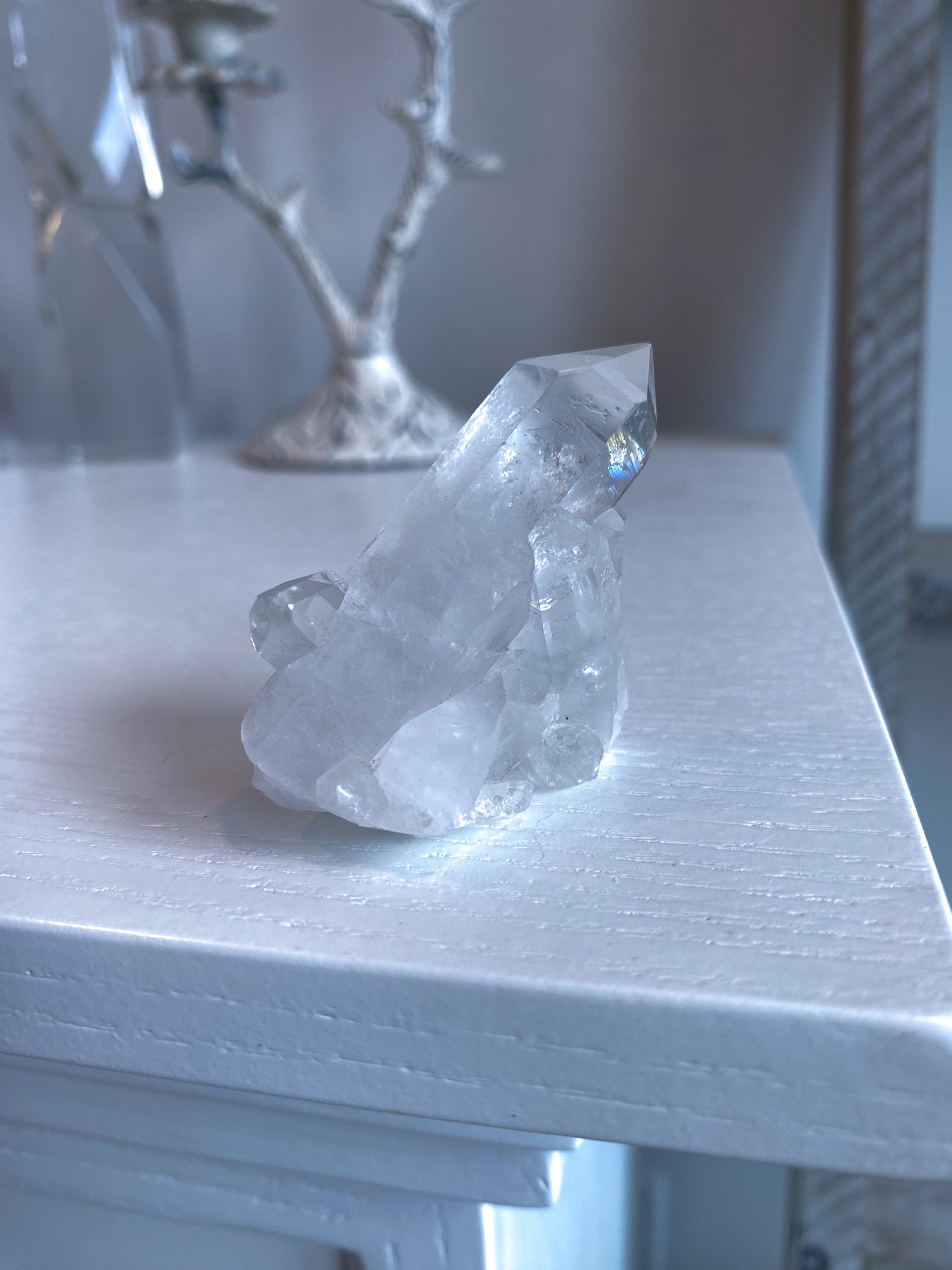 -- Clear Quartz Coloration- Primarily clear/colorless and can include specks, spikes or lines of other colors, cracks Chakras- All