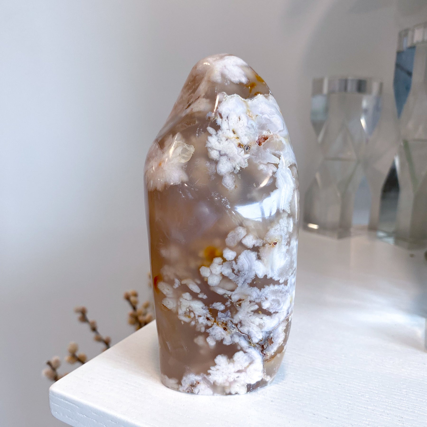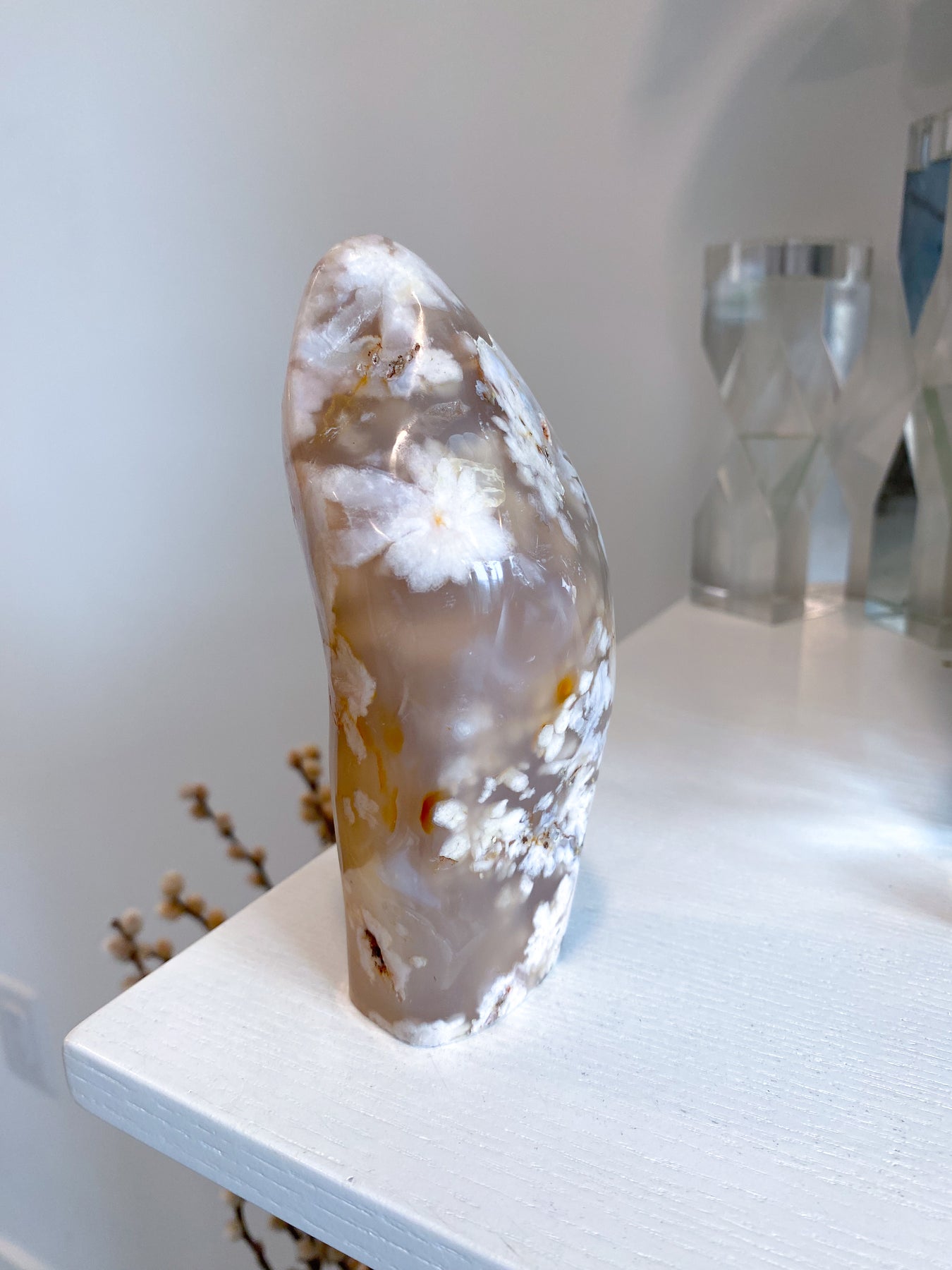 This stone has a gentle, and nourishing energy resembling a field of flowers. Flower Agate helps us envision the process of growth, honoring and appreciating each part of the process. Flower Agate helps us reach our highest potential, protecting us from fears and self-doubt. It inspires us to manifest and nurture our dreams. Its energy ignites a passion to pursue dreams and live life to the fullest. Flower Agate has a feminine and maternal presence that is comforting and grounding but at the same time. This unique stone has been credited with providing the ideal environment for restoring emotional balance, emotional recovery, and moving forward in life with grace and confidence. Flower Agate helps one bridge the gap between emotions and reality by activating and connecting our heart and root chakras together. Flower Agate’s energies resonate with one's core and can help better expose this damaging and sometimes traumatic pain that we still carry.
