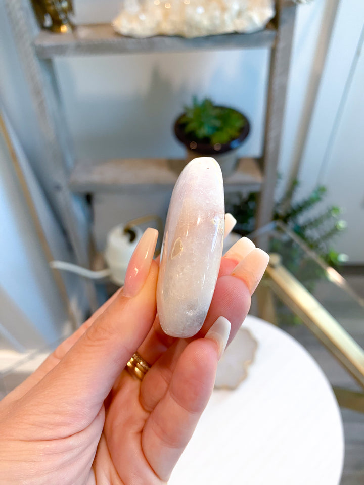 This stone has a gentle, and nourishing energy resembling a field of flowers. Flower Agate helps us envision the process of growth, honoring and appreciating each part of the process. Flower Agate helps us reach our highest potential, protecting us from fears and self-doubt. It inspires us to manifest and nurture our dreams. Its energy ignites a passion to pursue dreams and live life to the fullest. Flower Agate has a feminine and maternal presence that is comforting and grounding but at the same time. This unique stone has been credited with providing the ideal environment for restoring emotional balance, emotional recovery, and moving forward in life with grace and confidence. Flower Agate helps one bridge the gap between emotions and reality by activating and connecting our heart and root chakras together. One will begin to gain freedom from the deep pain that has attached itself to our hearts and will assist us in looking towards the path of self-embetterment. Flower Agate’s energies resonate with one's core and can help better expose this damaging and sometimes traumatic pain that we still carry.