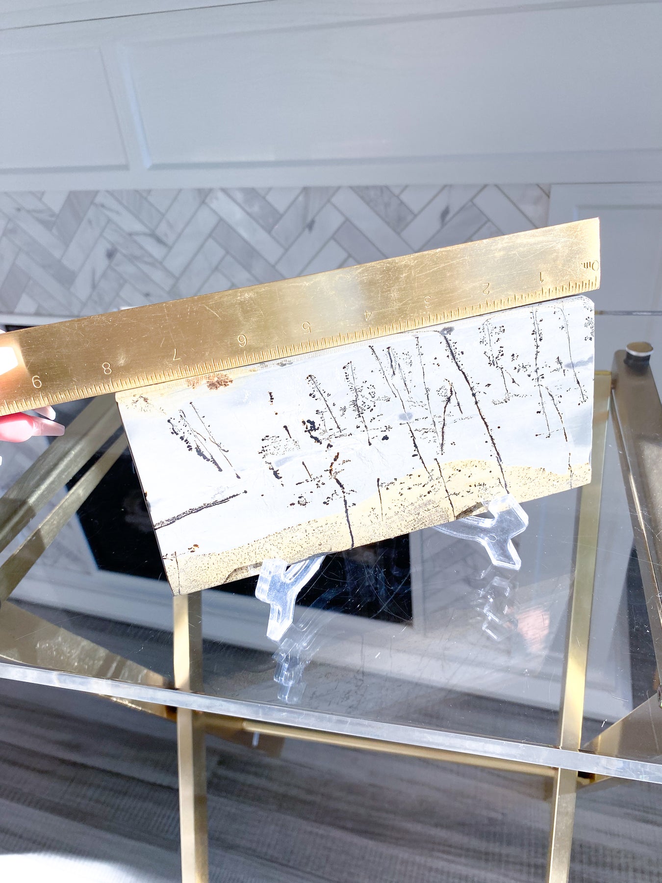 Get this exact slab, comes with stand. Images show the two sides, which are unique.