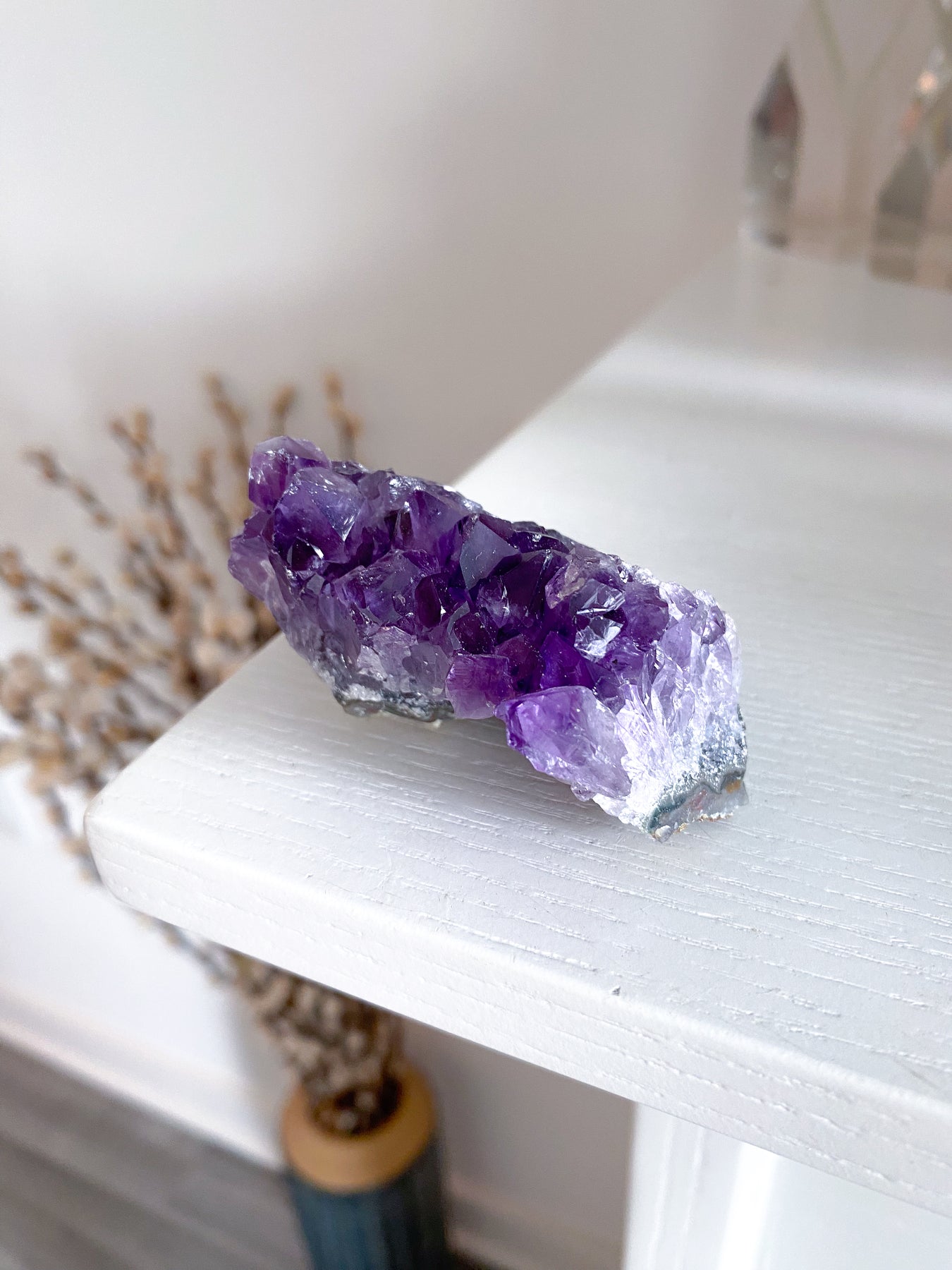 Loved for its deep purple hues, amethyst can enhance intuition and spiritual awareness. Known to activate and strengthen the third eye, it heightens psychic abilities and promotes a deeper connection to inner wisdom. Amethyst is an excellent choice for a meditation practice, providing clarity and focus while creating a calm and tranquil atmosphere. It fosters insight, balance, and a stronger sense of spiritual alignment, aiding manifestation efforts and relieving resistance to change.