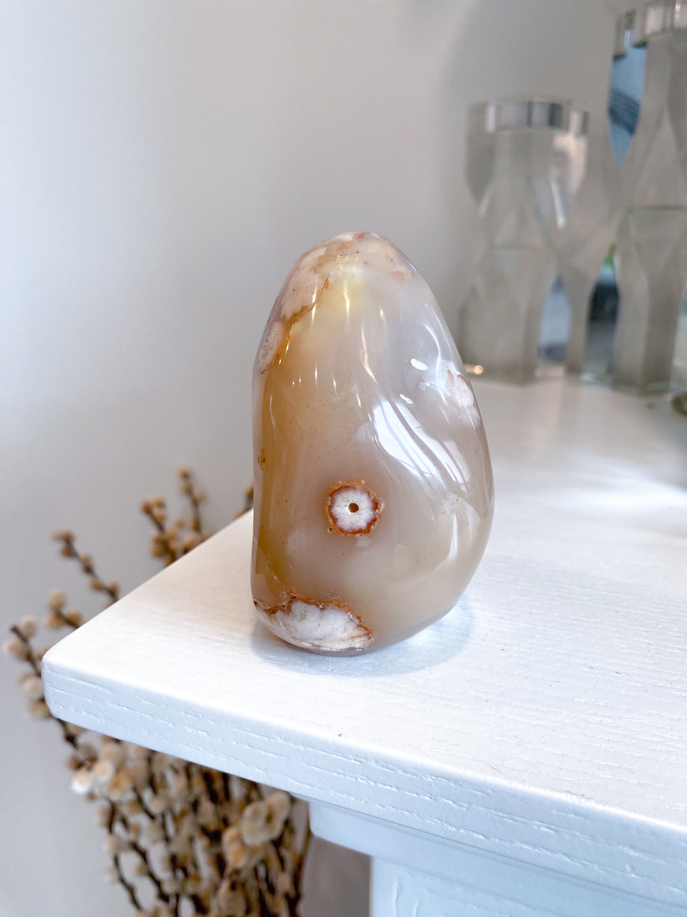 This stone has a gentle, and nourishing energy resembling a field of flowers. Flower Agate helps us envision the process of growth, honoring and appreciating each part of the process. Flower Agate helps us reach our highest potential, protecting us from fears and self-doubt. It inspires us to manifest and nurture our dreams. Its energy ignites a passion to pursue dreams and live life to the fullest. Flower Agate has a feminine and maternal presence that is comforting and grounding but at the same time. This unique stone has been credited with providing the ideal environment for restoring emotional balance, emotional recovery, and moving forward in life with grace and confidence. Flower Agate helps one bridge the gap between emotions and reality by activating and connecting our heart and root chakras together. Flower Agate’s energies resonate with one's core and can help better expose this damaging and sometimes traumatic pain that we still carry.