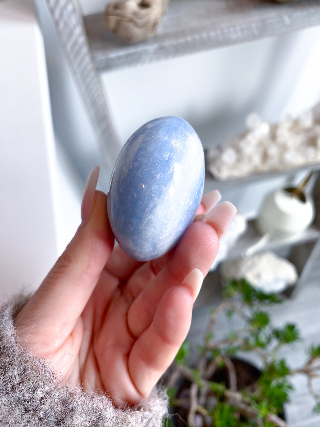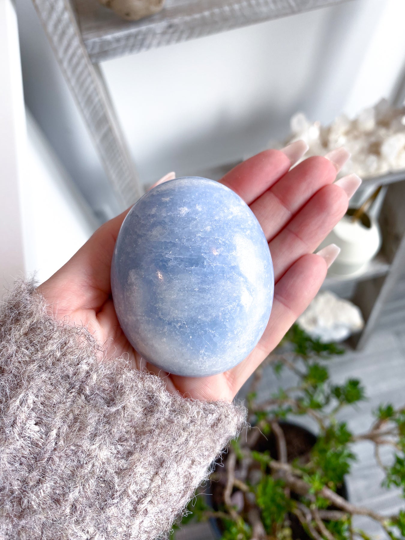 Blue Calcite is a calming crystal that soothes high strung emotions, encourages relaxation, and supports physical and emotional wellness. It works with the Third Eye Chakra to enhance intuition and memory, making it especially beneficial for learning and retaining information. Aligned with the Throat Chakra, it promotes clear and calm communication, even in challenging discussions. Blue Calcite's energy amplifies positivity, helping to clear negative emotions and old patterns while fostering an optimistic outlook. Its purifying properties also make it ideal for cleansing spaces and enhancing motivation and distance healing.