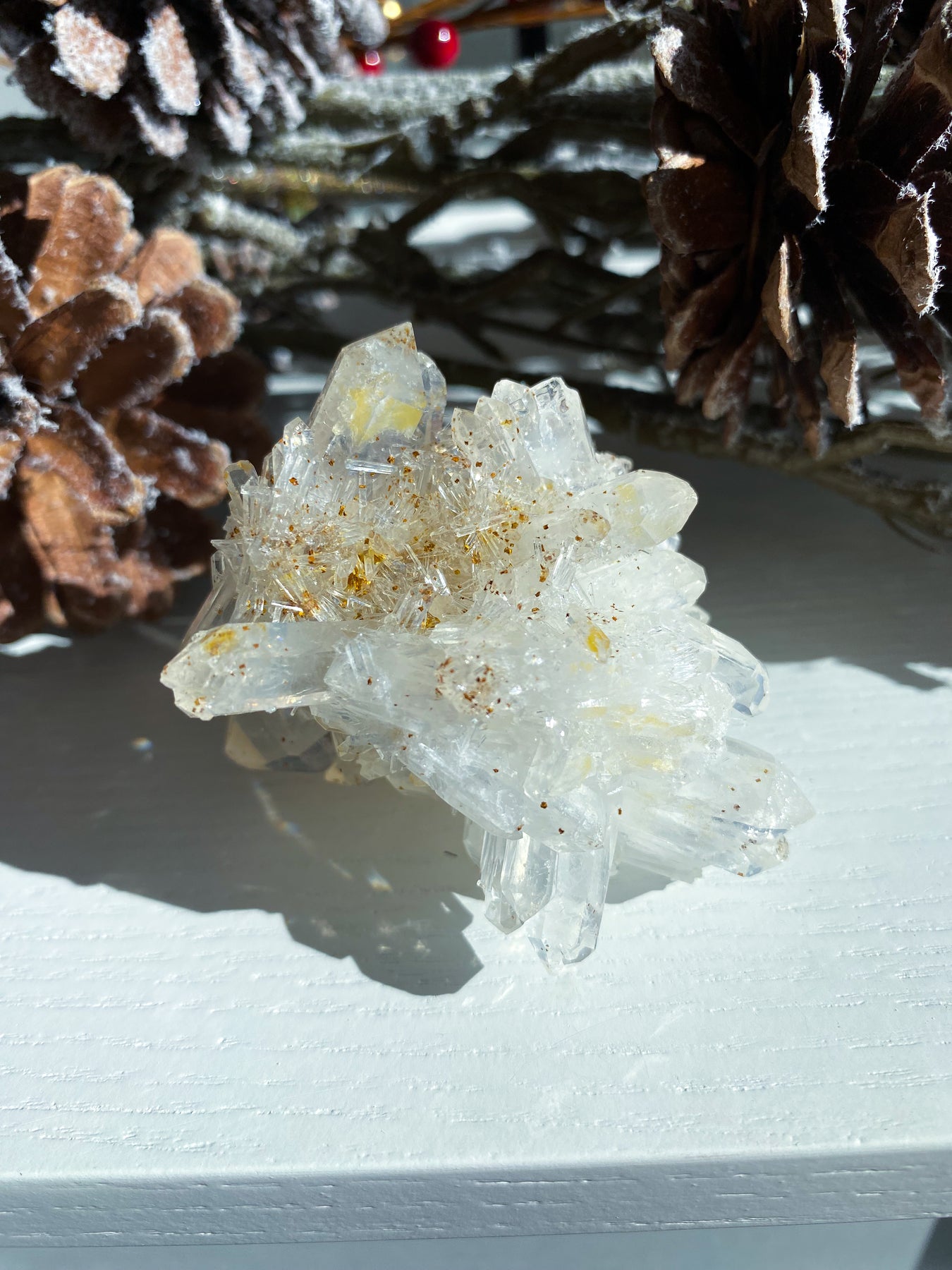 The iron gives the quartz a golden-rust hue, amplifying its grounding and energizing properties. Think of it as your personal spark plug for stuck energy, especially useful when you're calling your power back or reworking your relationship with action and discipline.