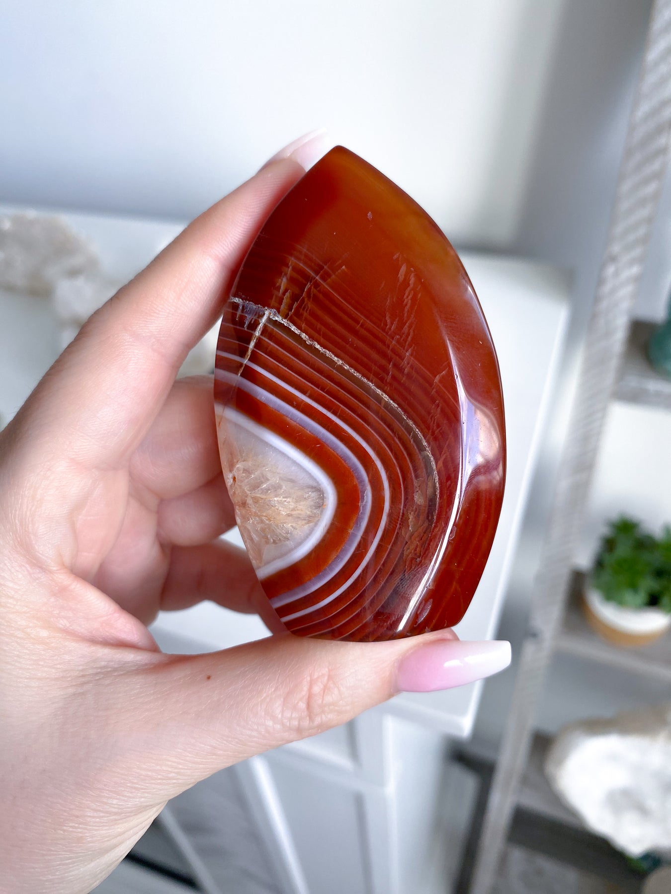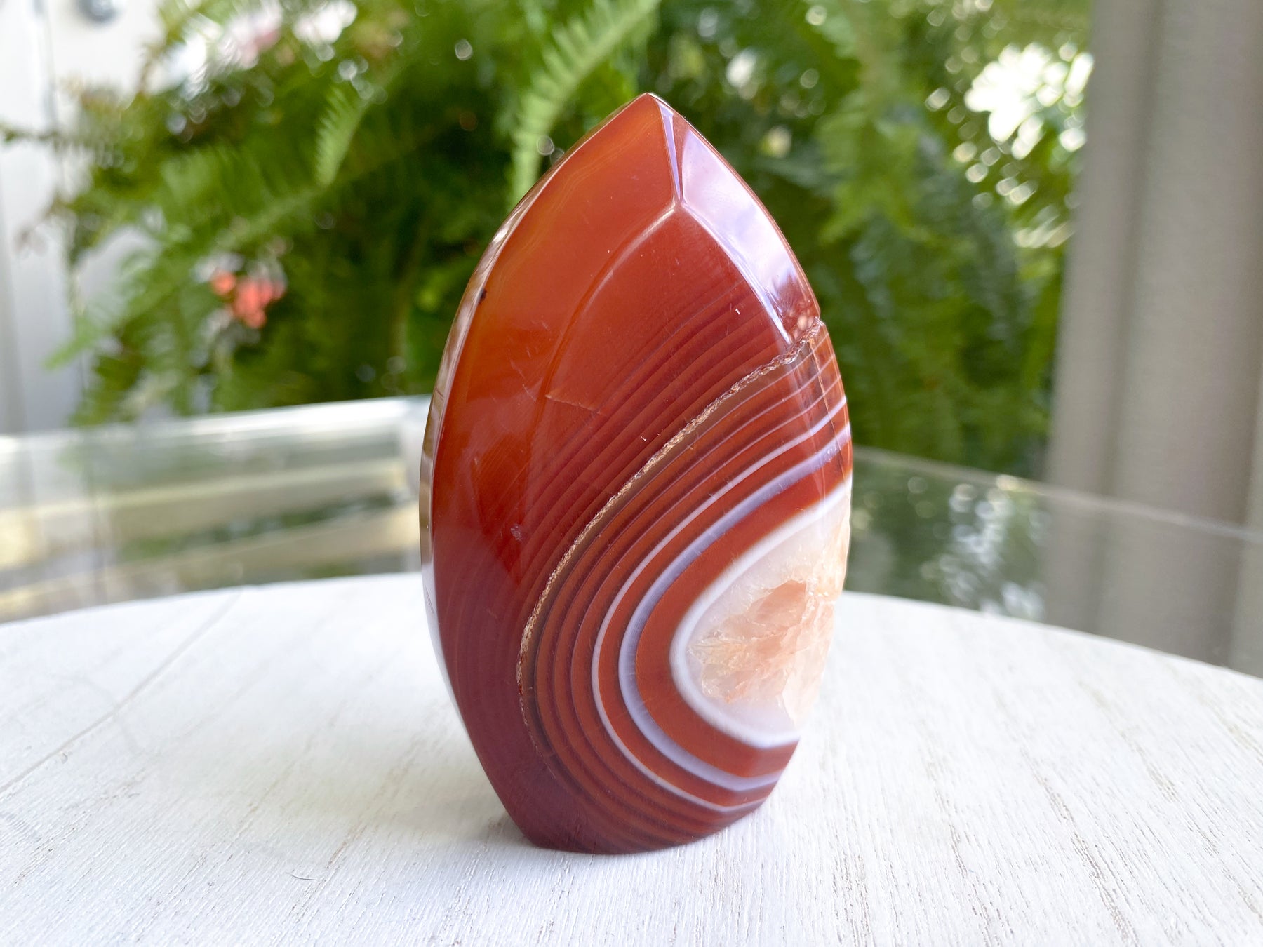 A powerful tool in healing from injury and sickness, Carnelian reminds us that the physical body is our spirit’s earthly temple, so we must maintain a healthy, thriving body as best we can. Carrying or wearing this stone fights apathy by providing a boost in vitality and zest for life by increasing life force energy. Carnelian protects from accidents, theft and attacks on the physical body. It calms unrighteous anger, increases personal power, physical energy, and courage. Carnelian also aids our analytical abilities, helping us stay grounded by making decisions with the present moment in mind, not past trauma or negative, unrelated experiences. In a meditation practice, it works to empty the mind so you can be present.