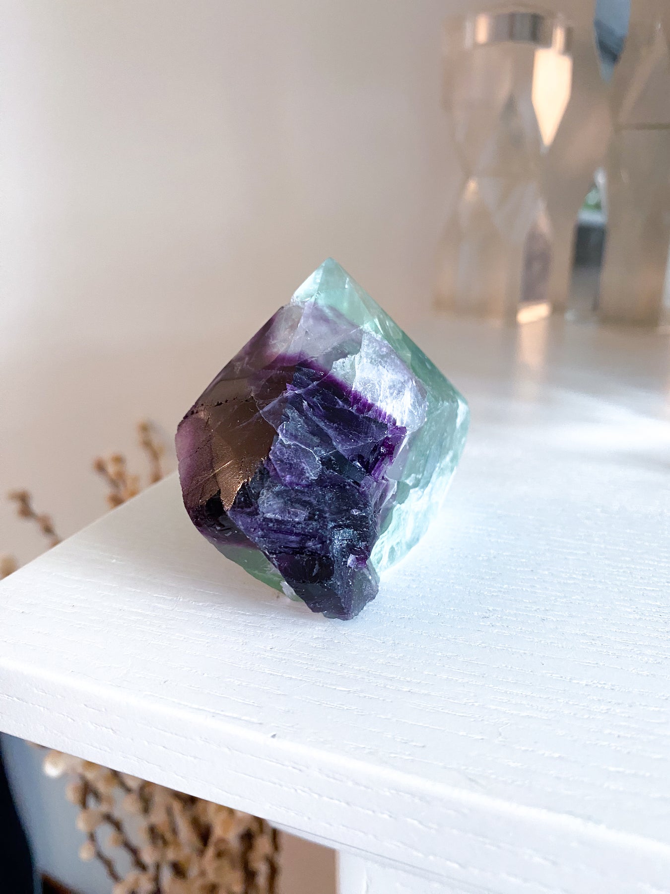 Fluorite cleanses and stabilizes the aura. It absorbs and neutralizes negative energy and stress. An excellent learning aid, Fluorite increases our powers of concentration, self-confidence and helps us in decision-making. It encourages positivity, balances the energies, and improves balance and coordination, both physically and mentally. Fluorite is said to absorb and neutralize negative vibrations. It makes one more receptive to the vibrations of other stones. Fluorite should be kept in every room of the home. Fluorite is known as the "Genius Stone". Fluorite heightens mental abilities, assisting in rapid organization and processing of information and can bring mental clarity and stability to an otherwise chaotic situation. Fluorite absorbs negative energies from the environment and is effective at Auric and Chakra cleansing. Fluorite can also shield the user from psychic manipulation. Due to its powerful ability to absorb negative energies, Fluorite should be cleared often.