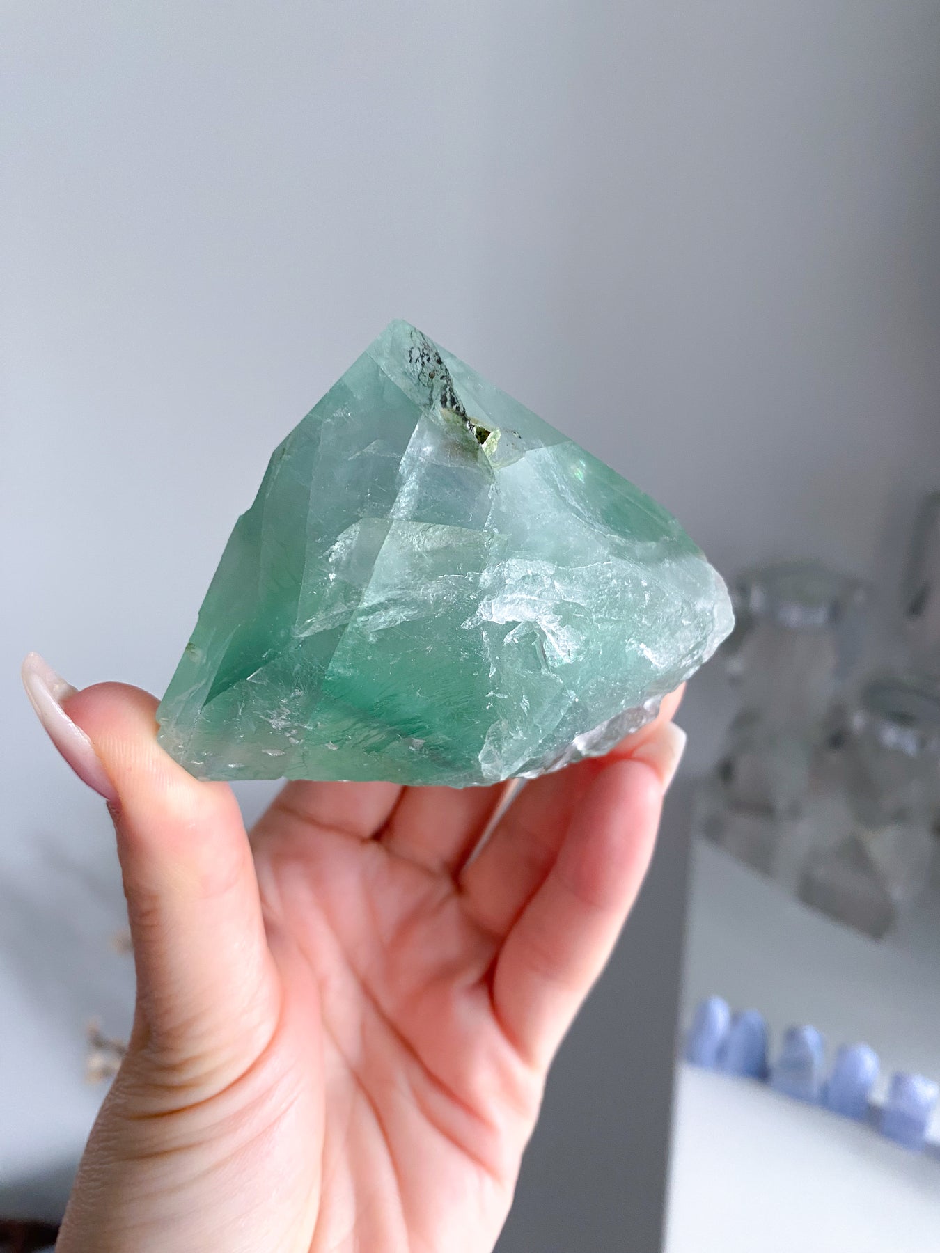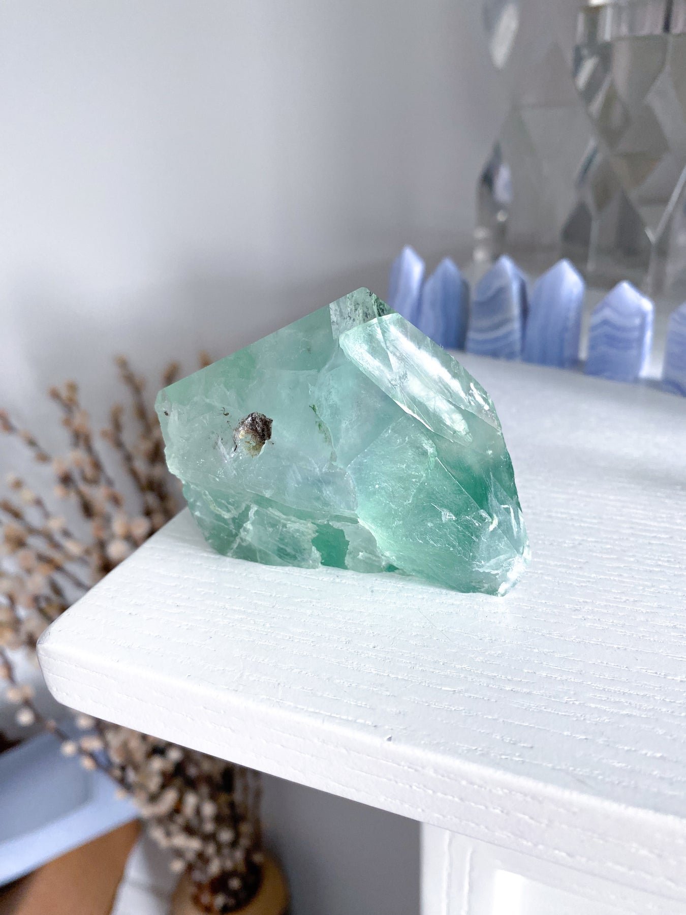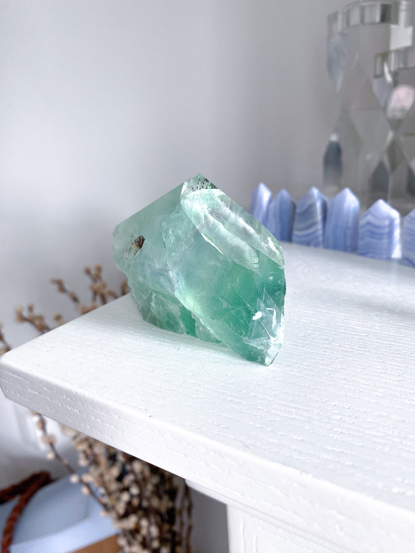 Fluorite cleanses and stabilizes the aura. It absorbs and neutralizes negative energy and stress. An excellent learning aid, Fluorite increases our powers of concentration, self-confidence and helps us in decision-making. It encourages positivity, balances the energies, and improves balance and coordination, both physically and mentally. Fluorite is said to absorb and neutralize negative vibrations. It makes one more receptive to the vibrations of other stones. Fluorite should be kept in every room of the home. Fluorite is known as the "Genius Stone". Fluorite heightens mental abilities, assisting in rapid organization and processing of information and can bring mental clarity and stability to an otherwise chaotic situation. Fluorite absorbs negative energies from the environment and is effective at Auric and Chakra cleansing. Fluorite can also shield the user from psychic manipulation. Due to its powerful ability to absorb negative energies, Fluorite should be cleared often.
