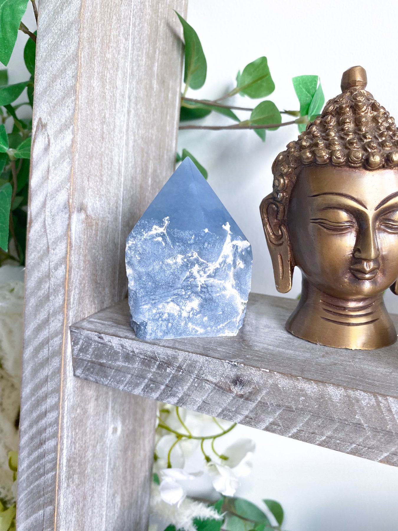 Angelite has soothing, calm energy that helps people connect easily with their angels, spirits and ascended masters by raising conscious awareness and opening the upper chakras. Trouble with speaking your truth, doubts and fears melt away when you consistently work with this stone. It also helps with heightening your perception while facilitating forgiveness, counteracting cruelty from outside influences and increasing telepathic communication. An ideal crystal companion for your meditation practice, Angelite enhances patience and compassion while releasing mental blocks that help you connect inward and to the spiritual planes.