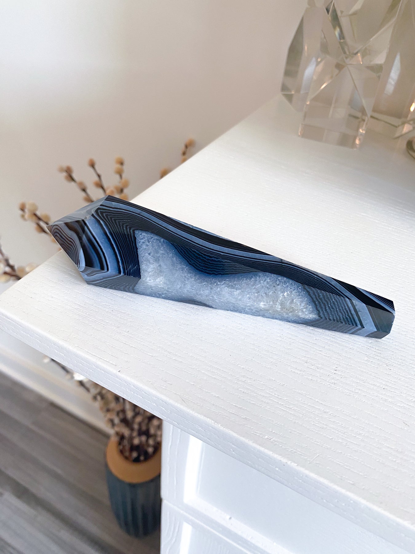 Black Agateis a grounding and protective stone, known for its ability to absorb and transform negative energy. It fosters emotional strength and stability, helping to calm anxiety and promote inner peace.
