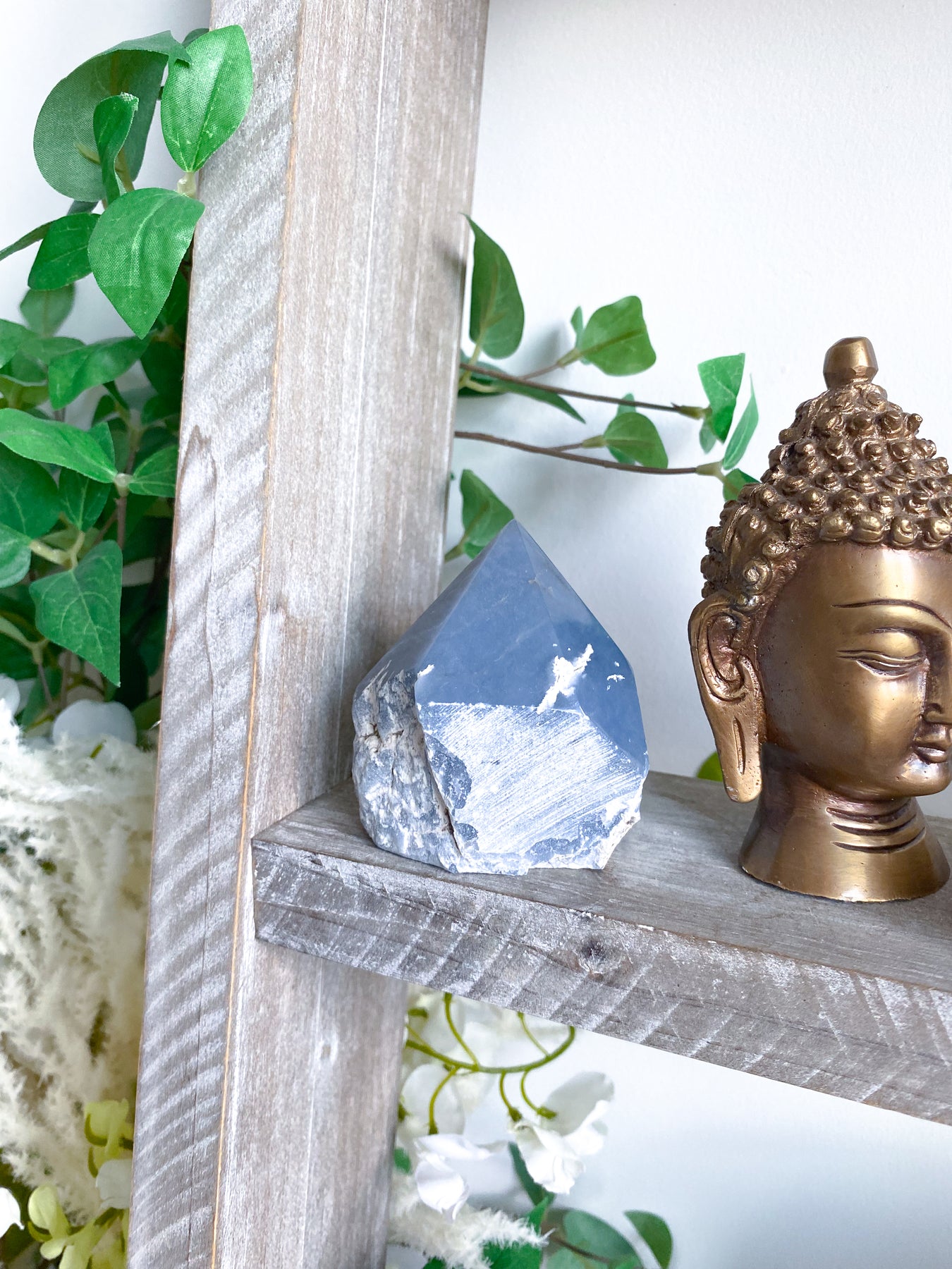 Angelite has soothing, calm energy that helps people connect easily with their angels, spirits and ascended masters by raising conscious awareness and opening the upper chakras. Trouble with speaking your truth, doubts and fears melt away when you consistently work with this stone. It also helps with heightening your perception while facilitating forgiveness, counteracting cruelty from outside influences and increasing telepathic communication. An ideal crystal companion for your meditation practice, Angelite enhances patience and compassion while releasing mental blocks that help you connect inward and to the spiritual planes.