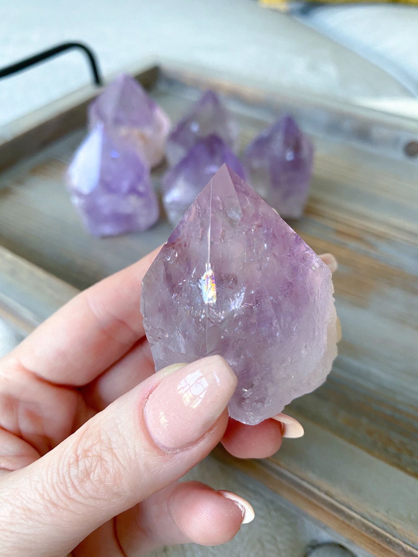 Each crystal has at least one small rainbow. Approx 2" high. Get one top polish per order. See fine print below for custom selection.