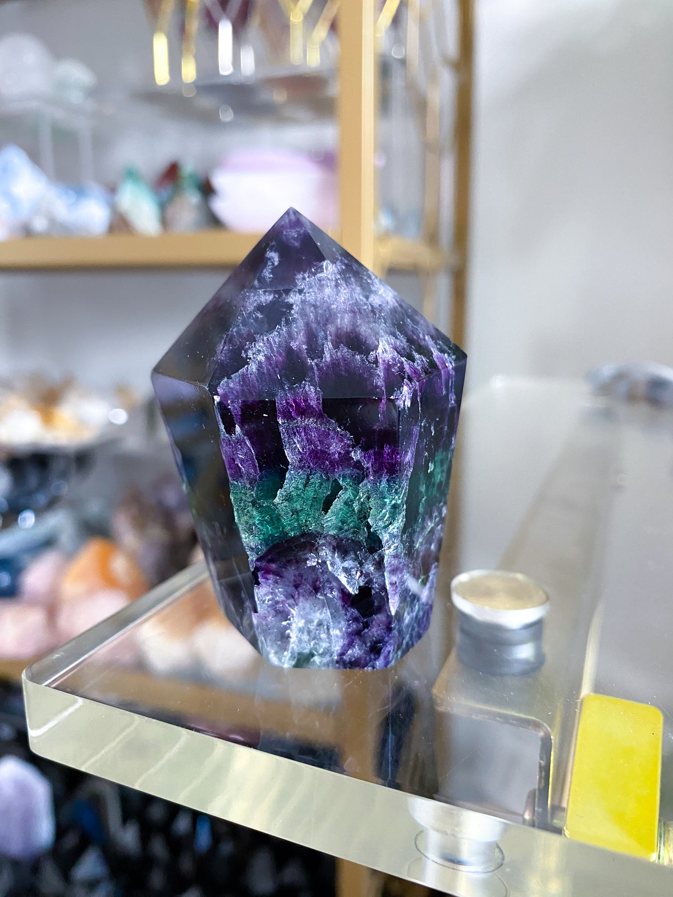 Fluorite cleanses and stabilizes the aura. It absorbs and neutralizes negative energy and stress. An excellent learning aid, Fluorite increases our powers of concentration, self-confidence and helps us in decision-making. It encourages positivity, balances the energies, and improves balance and coordination, both physically and mentally. Fluorite is said to absorb and neutralize negative vibrations. It makes one more receptive to the vibrations of other stones. Fluorite should be kept in every room of the home. Fluorite is known as the "Genius Stone". Fluorite heightens mental abilities, assisting in rapid organization and processing of information and can bring mental clarity and stability to an otherwise chaotic situation. Fluorite absorbs negative energies from the environment and is effective at Auric and Chakra cleansing. Fluorite can also shield the user from psychic manipulation. Due to its powerful ability to absorb negative energies, Fluorite should be cleared often.