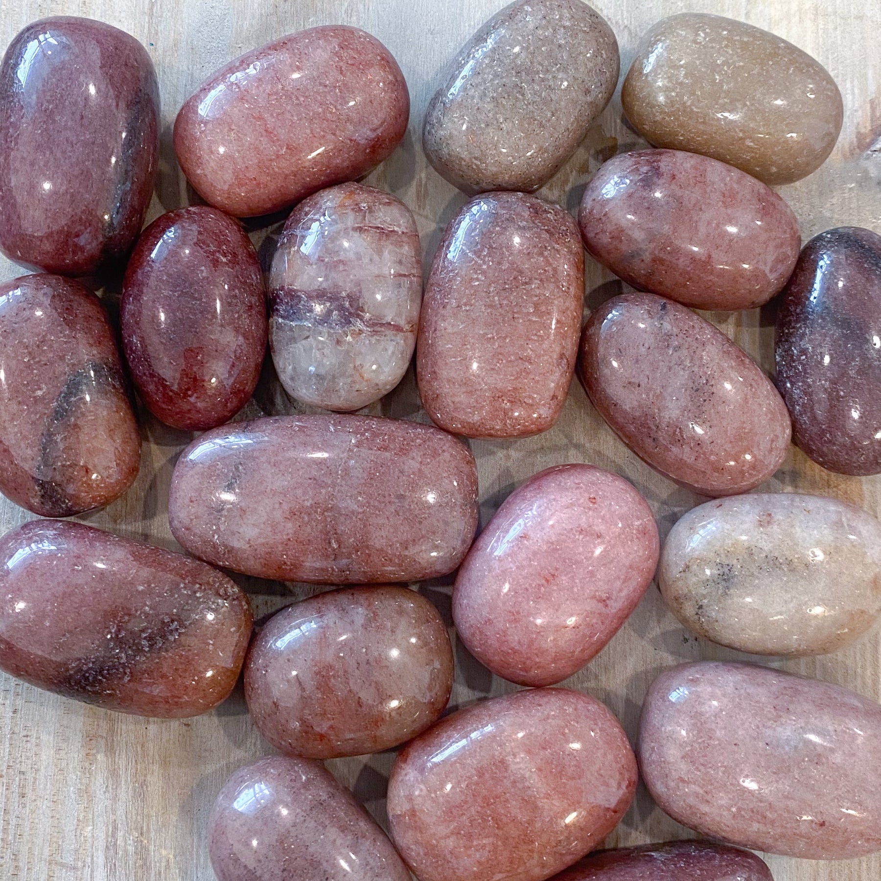 Strawberry Quartz is a stone of all encompassing love; amplifying, radiating, and attracting love while promoting self healing. It provides a soothing and peaceful energy to the holder, working to balance one's aura and increase feelings of self worth. Strawberry Quartz is also said to aid in finding your soulmate.