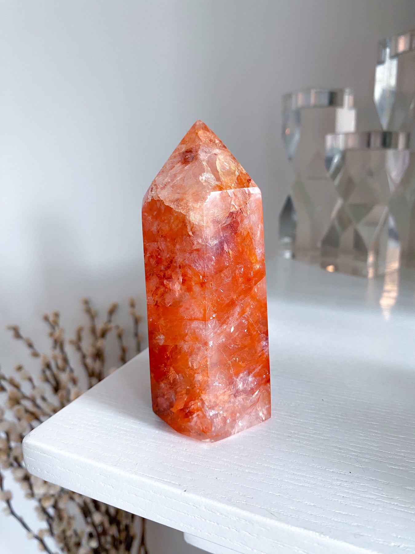 Fire Quartz / Red Fire Quartz, is a variant of quartz that exhibits a range of pink to red colors due to the presence of various mineral inclusions.