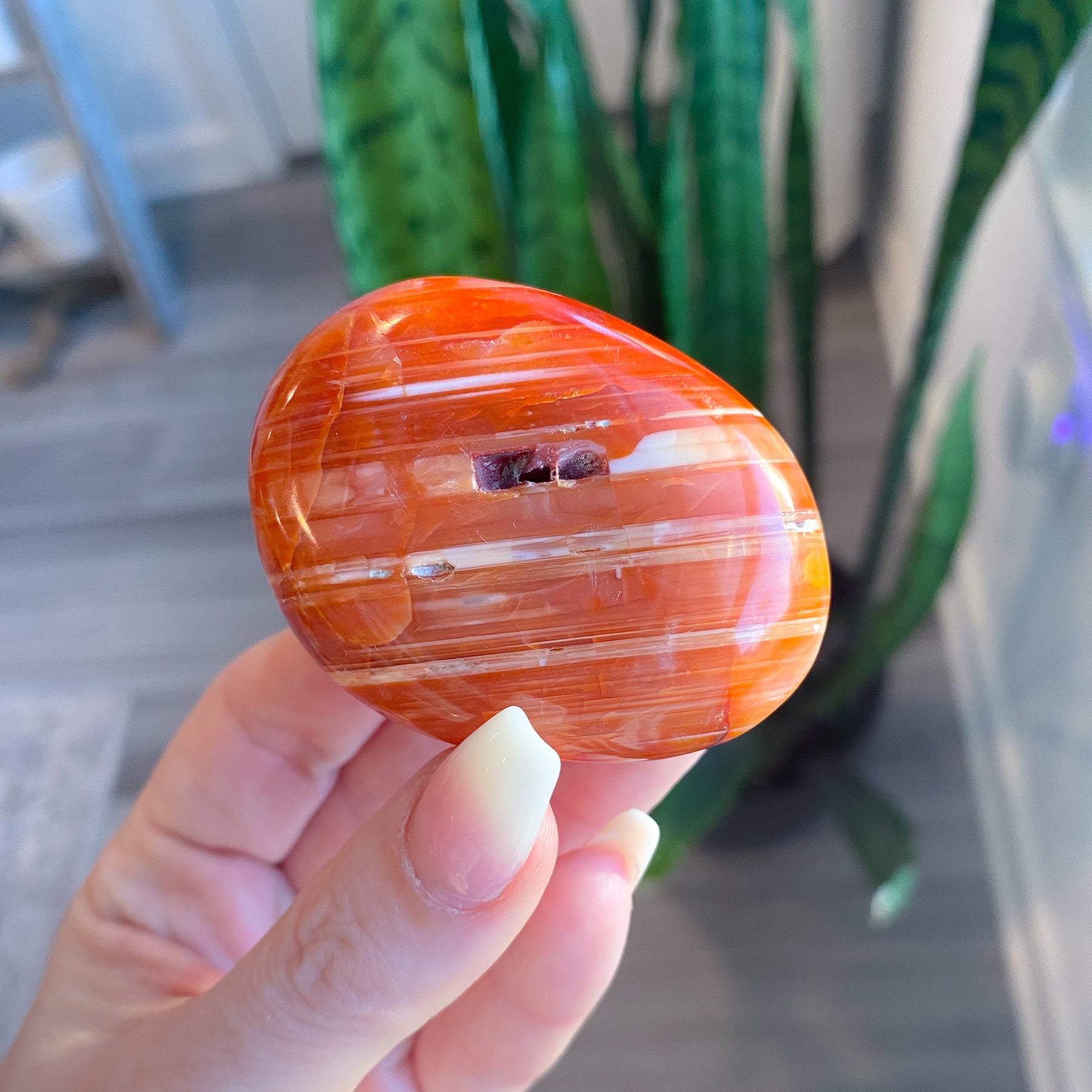 A powerful tool in healing from injury and sickness, Carnelian reminds us that the physical body is our spirit’s earthly temple, so we must maintain a healthy, thriving body as best we can. Carrying or wearing this stone fights apathy by providing a boost in vitality and zest for life by increasing life force energy. Carnelian protects from accidents, theft and attacks on the physical body. It calms unrighteous anger, increases personal power, physical energy, and courage. Carnelian also aids our analytical abilities, helping us stay grounded by making decisions with the present moment in mind, not past trauma or negative, unrelated experiences. In a meditation practice, it works to empty the mind so you can be present.