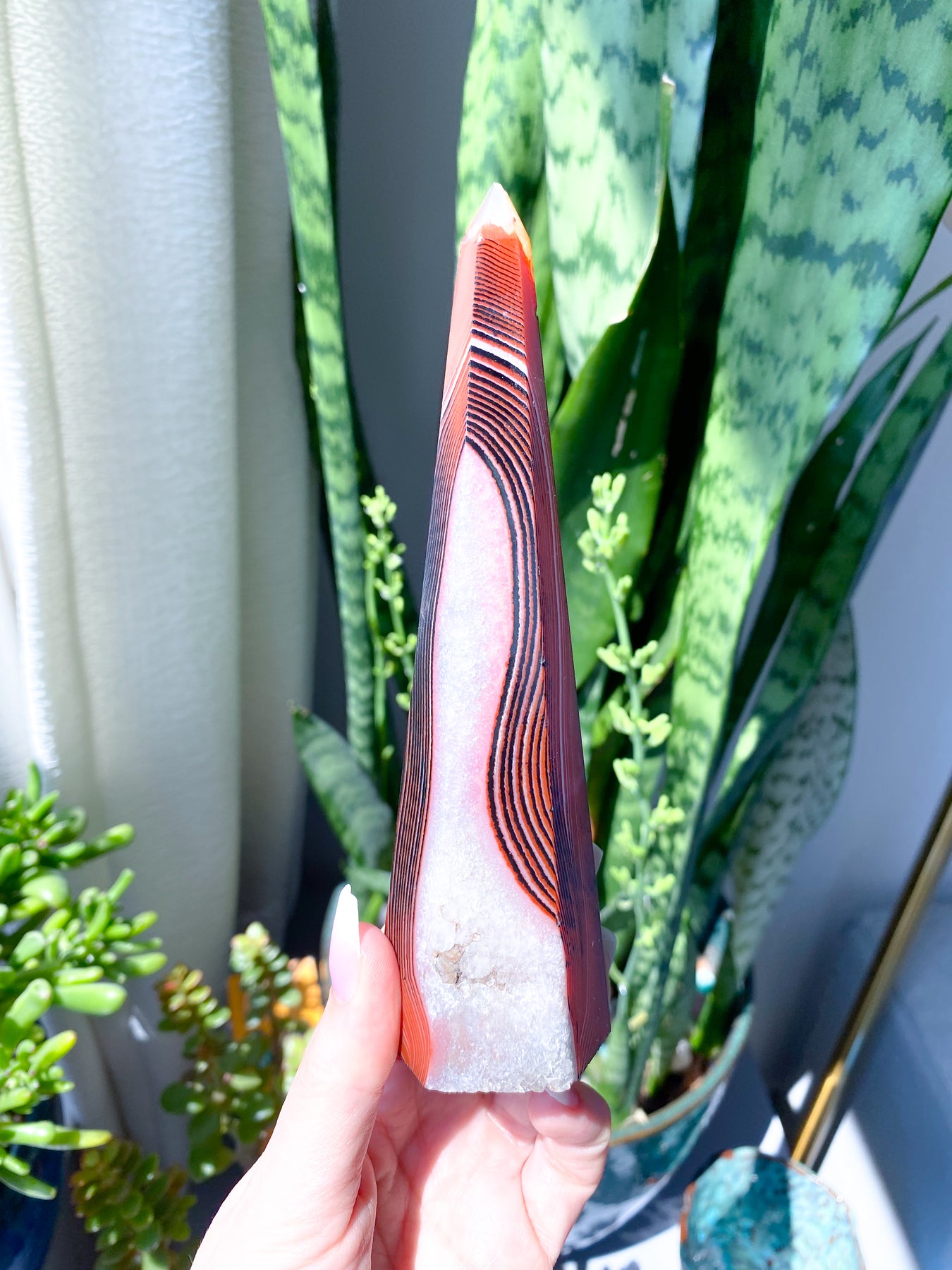 Sardonyx is your go-to ally when you're ready to anchor into your values and move through the world with quiet strength. A blend of onyx and sard, this stone carries the stabilizing energy of the earth with a fiery spark of courage.