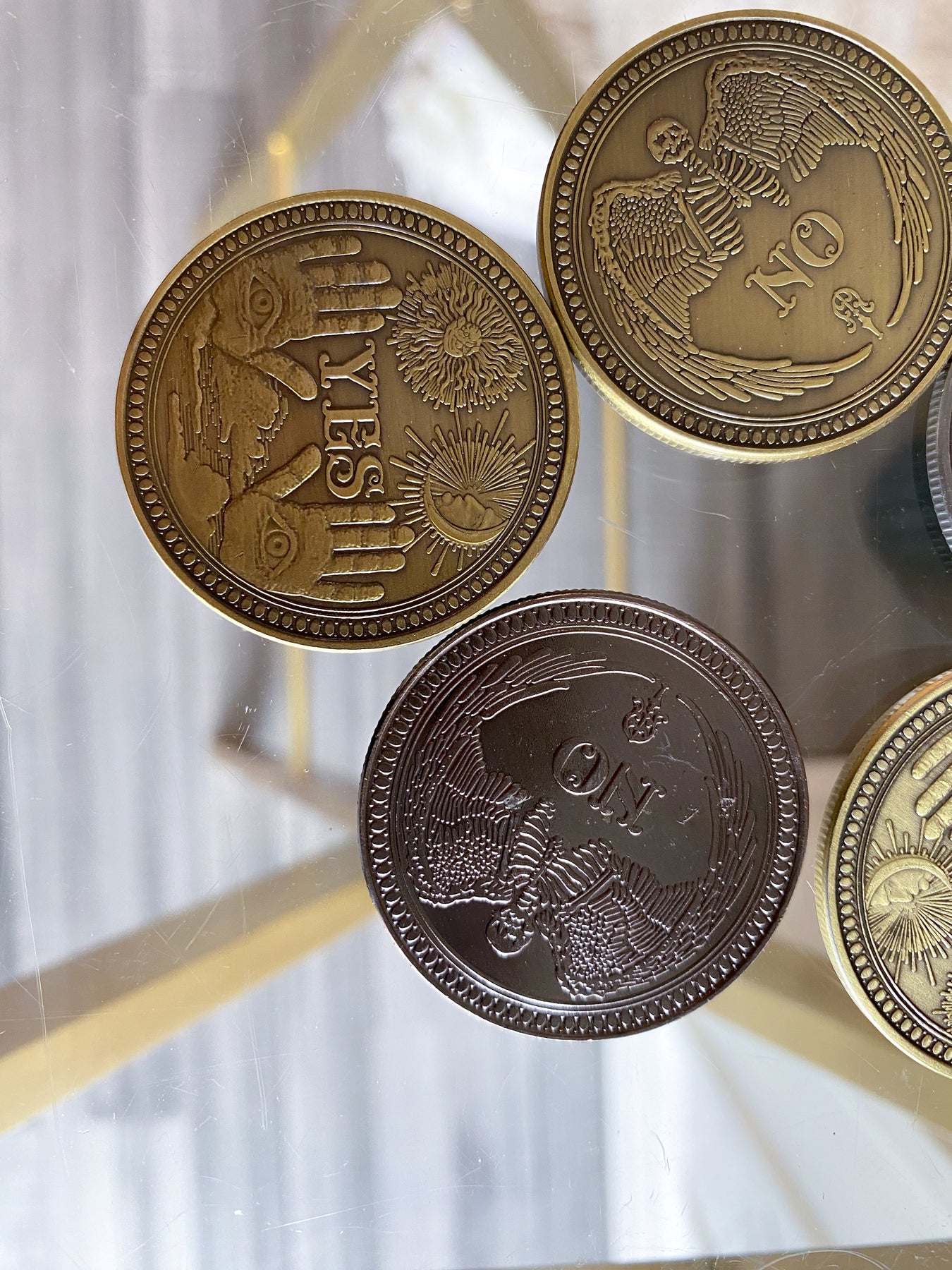 Each coin is made of high quality of zinc alloy core, plated, high strength, wear resistant, and anti-rust. Each coin is double-sided, with pictures represented front and back.
