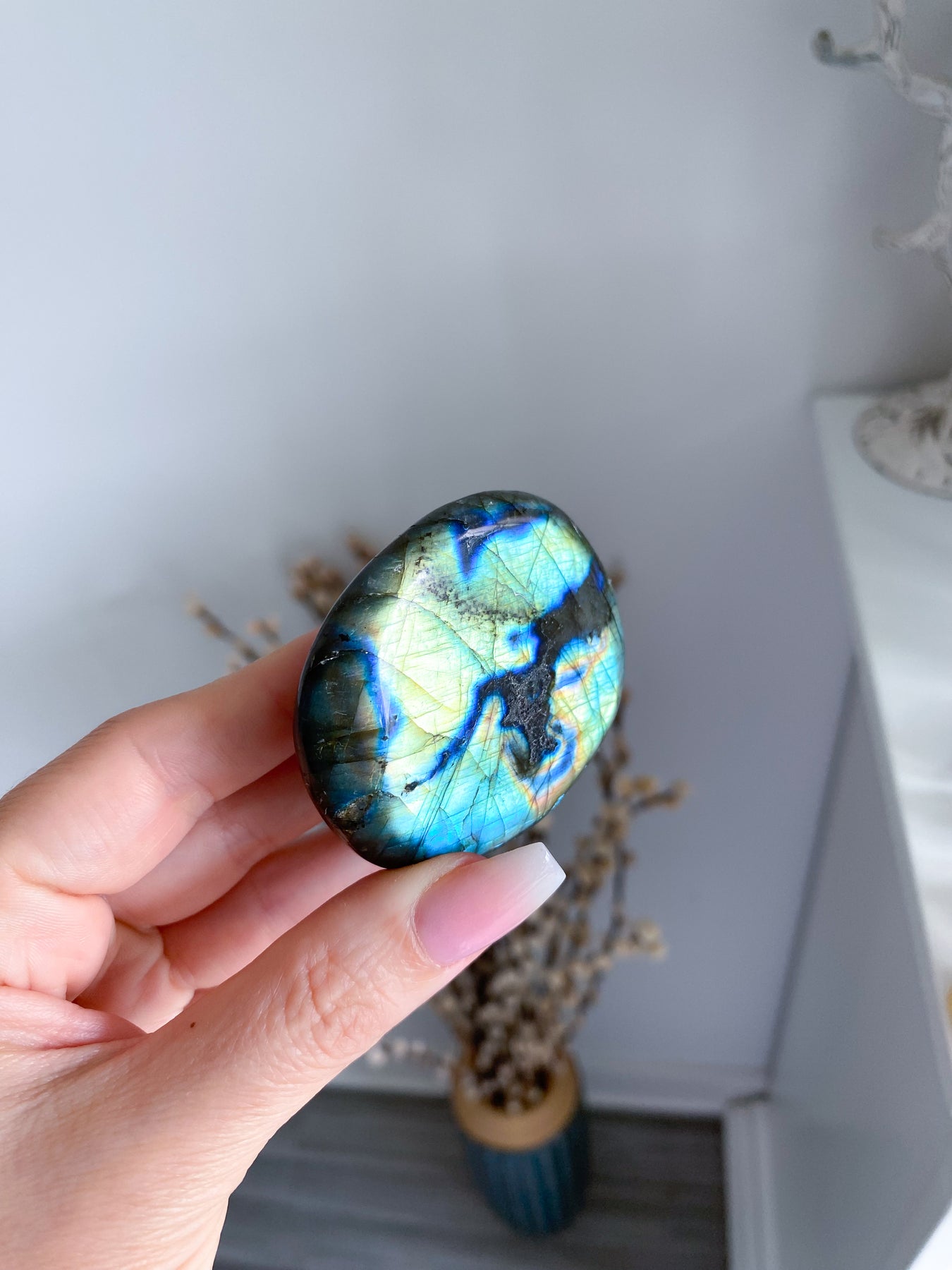 Labradorite’s transformative powers support us during times of change and personal evolution. Labradorite helps soothe fear, release insecurity, calm the mind, and promote strength and perseverance. It can lift your mood, strengthen intuition, and even balance and protect your aura. Working with this stone will enhance your psychic abilities by elevating your intuition, raising your consciousness and deepening your connection to spiritual energies. A gateway to new ideas, Labradorite stimulates imagination and is known to reveal the truth behind illusions. Because of these benefits, this iridescent stone truly builds trust in the self and in the Universe.