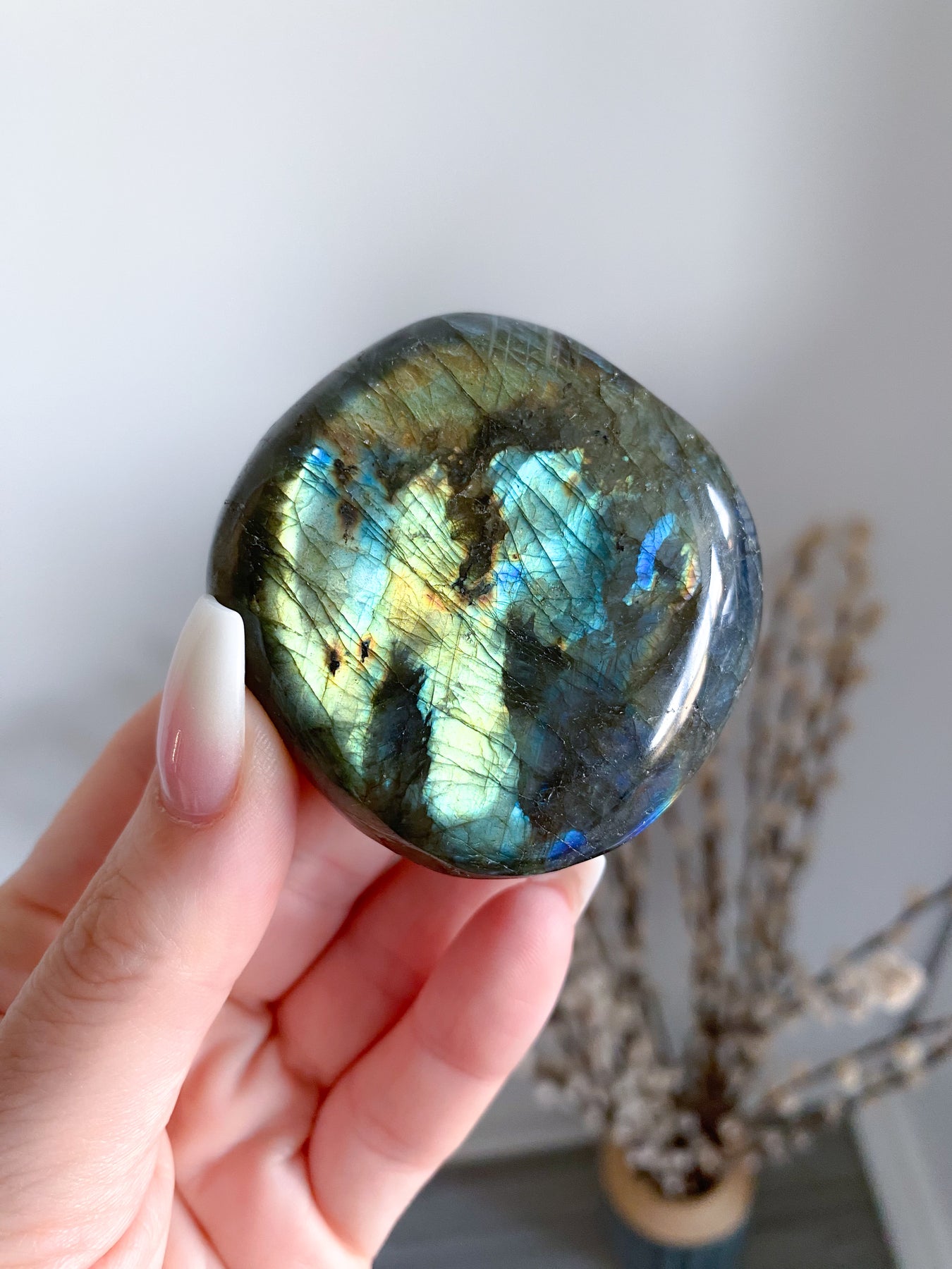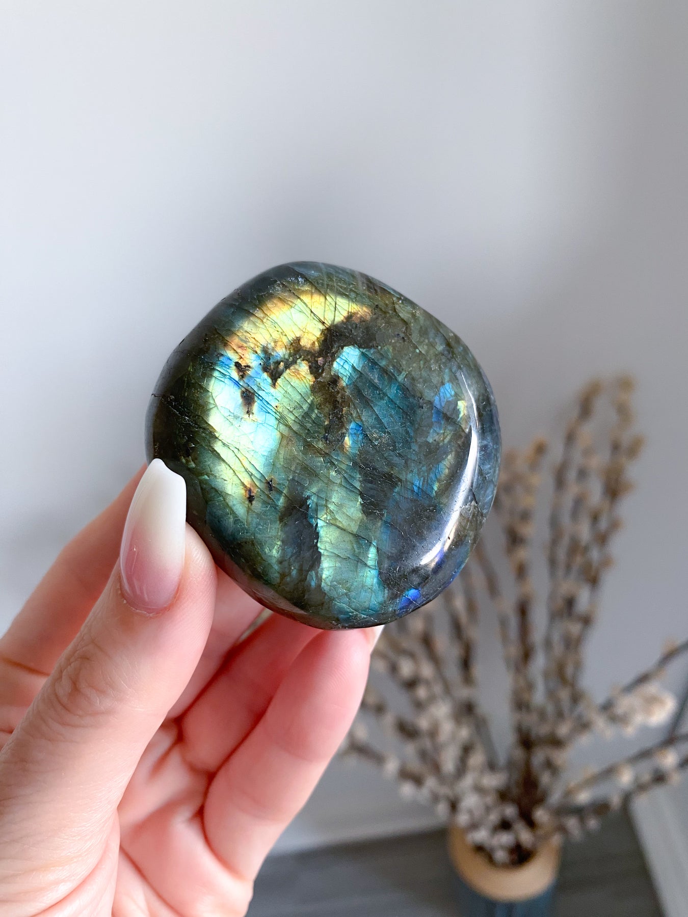 Labradorite’s transformative powers support us during times of change and personal evolution. Labradorite helps soothe fear, release insecurity, calm the mind, and promote strength and perseverance. It can lift your mood, strengthen intuition, and even balance and protect your aura. Working with this stone will enhance your psychic abilities by elevating your intuition, raising your consciousness and deepening your connection to spiritual energies. A gateway to new ideas, Labradorite stimulates imagination and is known to reveal the truth behind illusions. Because of these benefits, this iridescent stone truly builds trust in the self and in the Universe.
