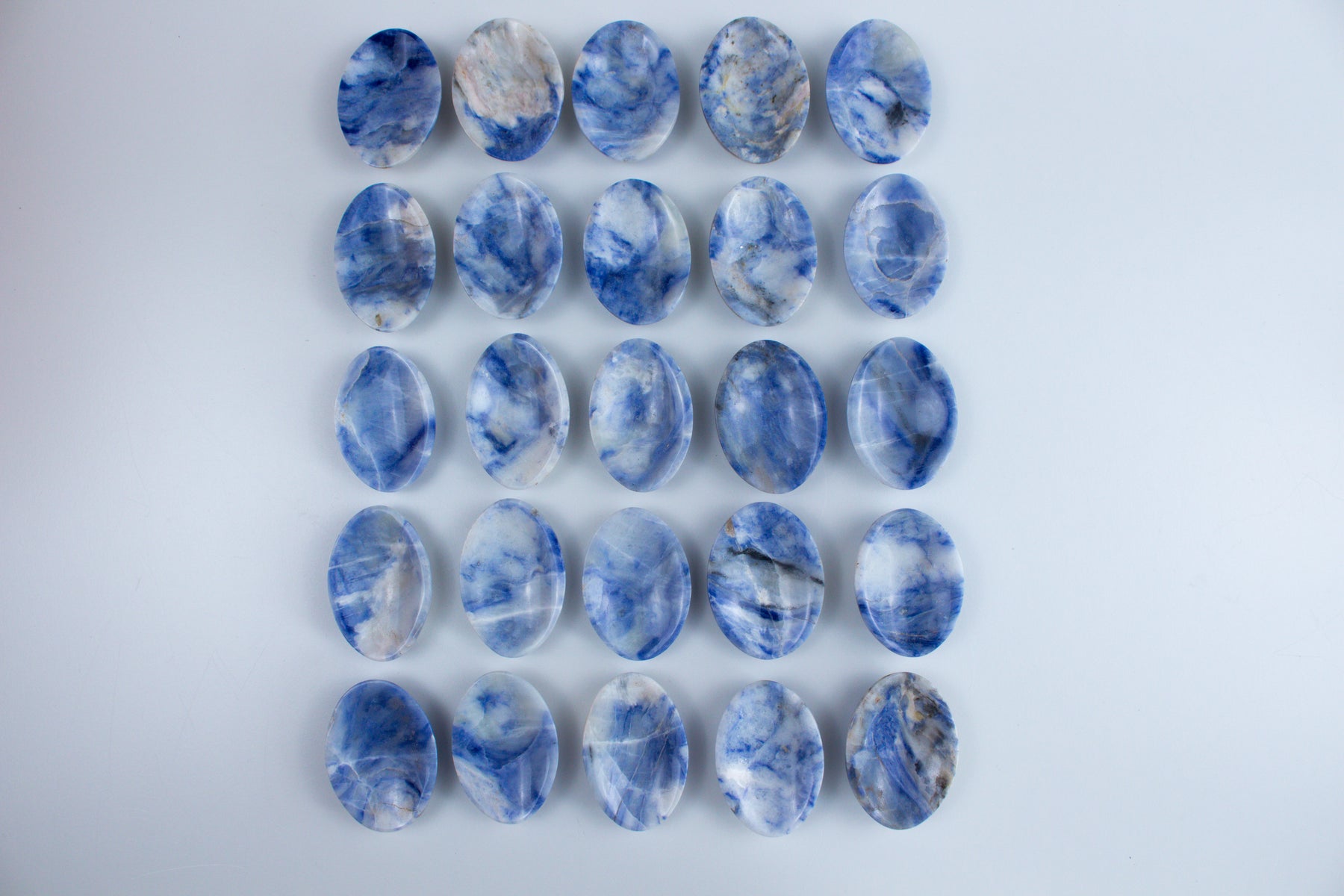 Afghanite is a rare, complex mineral. Ranging in color from light sky blue to dark navy, Afghanite can also appear colorless and transparent and have hues of pink. Discovered in 1968 by R. Giraud, F. Cesbron, and P. Bariand, it was named after the country of origin, Afghanistan, specifically the Badakhshan region in the northeast.