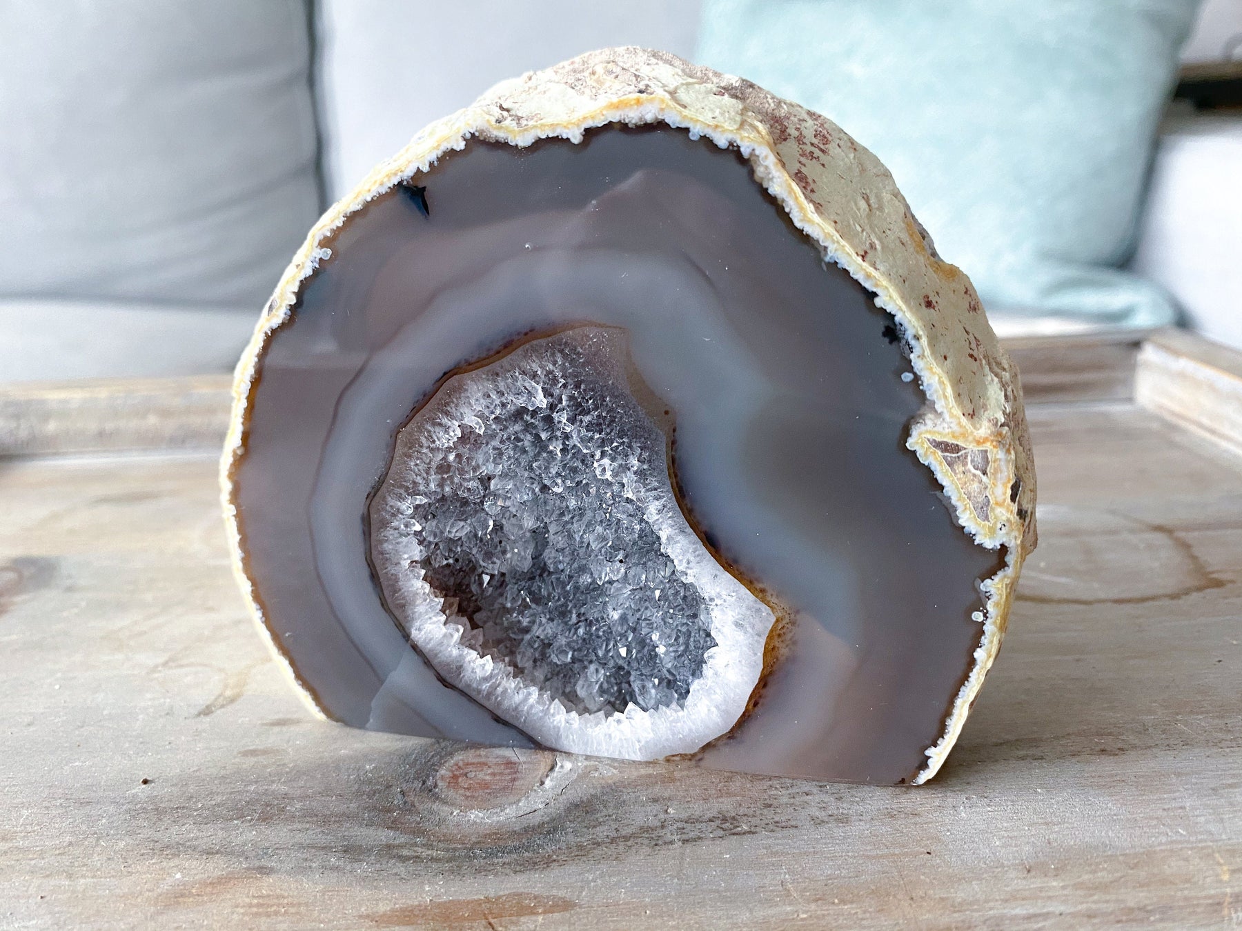 Large Druzy Agate Geode Freestanding - Increase Energy - Calm Nerves - Crystal Therapy - Self-care Stone - 3.5" tall