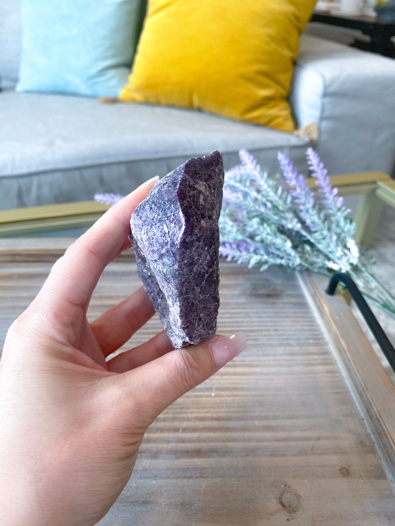 Known as "the stone of transition", Lepidolite helps to shift and restructure old energy patterns, bringing light and hope to a situation. Lepidolite is said to alleviate depression, bringing serenity from the knowledge that the Universe will always provide. The soothing energy of Lepidolite have been used to help those suffering from Post-Traumatic Stress Disorder (PTSD), a well as ADHD, and sleep disorders, such as insomnia. Lepidolite is also thought to be good for helping to absorb electromagnetic pollution and is said to work best for this when placed next to the computer.