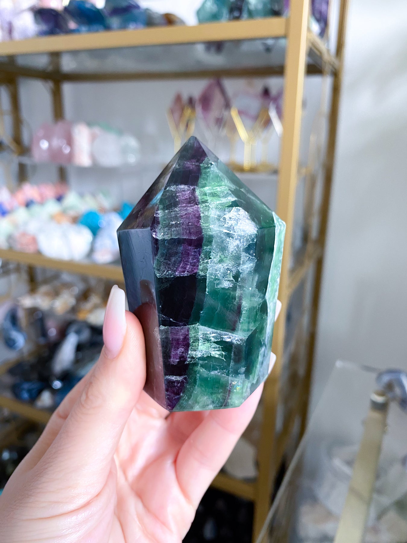 Fluorite cleanses and stabilizes the aura. It absorbs and neutralizes negative energy and stress. An excellent learning aid, Fluorite increases our powers of concentration, self-confidence and helps us in decision-making. It encourages positivity, balances the energies, and improves balance and coordination, both physically and mentally. Fluorite is said to absorb and neutralize negative vibrations. It makes one more receptive to the vibrations of other stones. Fluorite should be kept in every room of the home. Fluorite is known as the "Genius Stone". Fluorite heightens mental abilities, assisting in rapid organization and processing of information and can bring mental clarity and stability to an otherwise chaotic situation. Fluorite absorbs negative energies from the environment and is effective at Auric and Chakra cleansing. Fluorite can also shield the user from psychic manipulation. Due to its powerful ability to absorb negative energies, Fluorite should be cleared often.