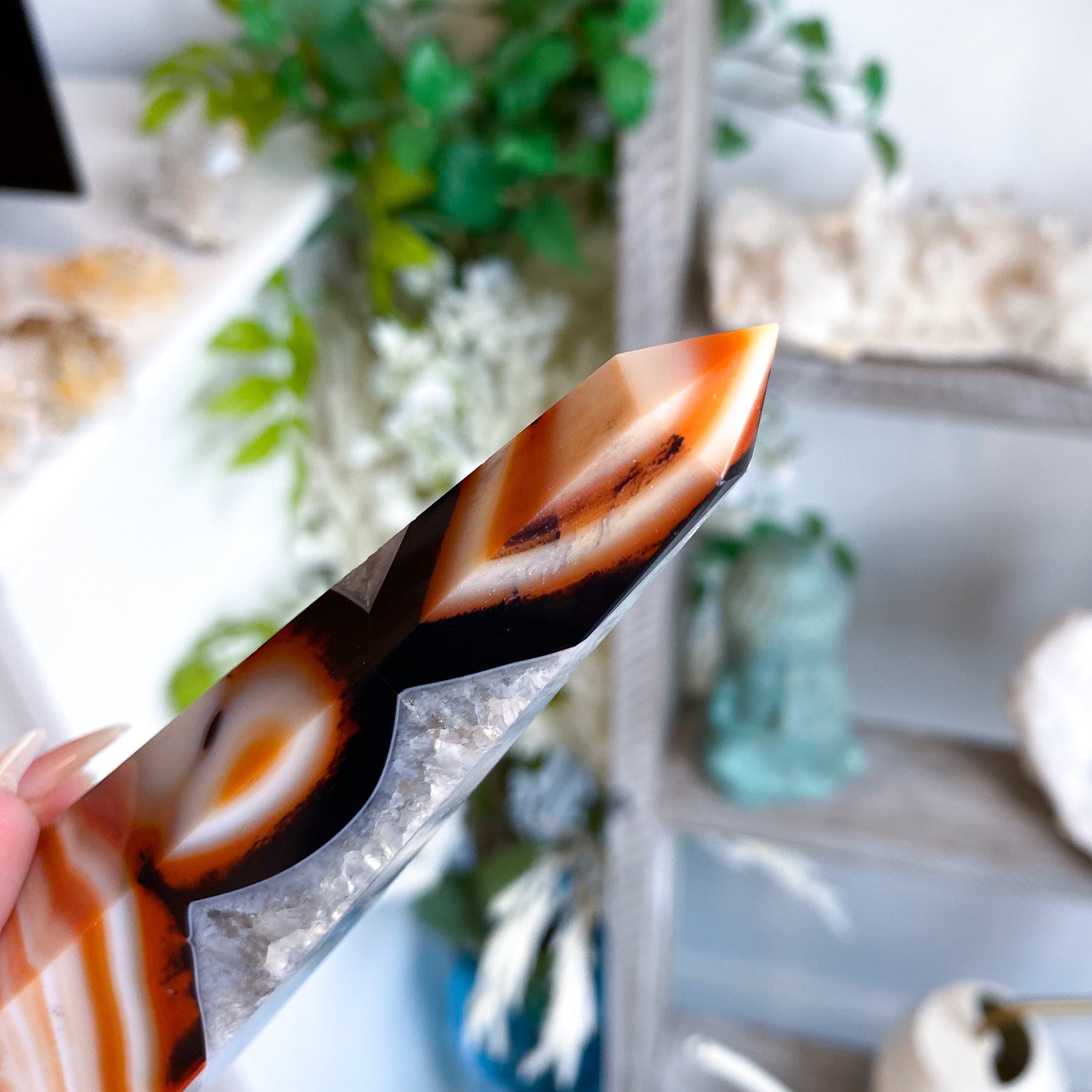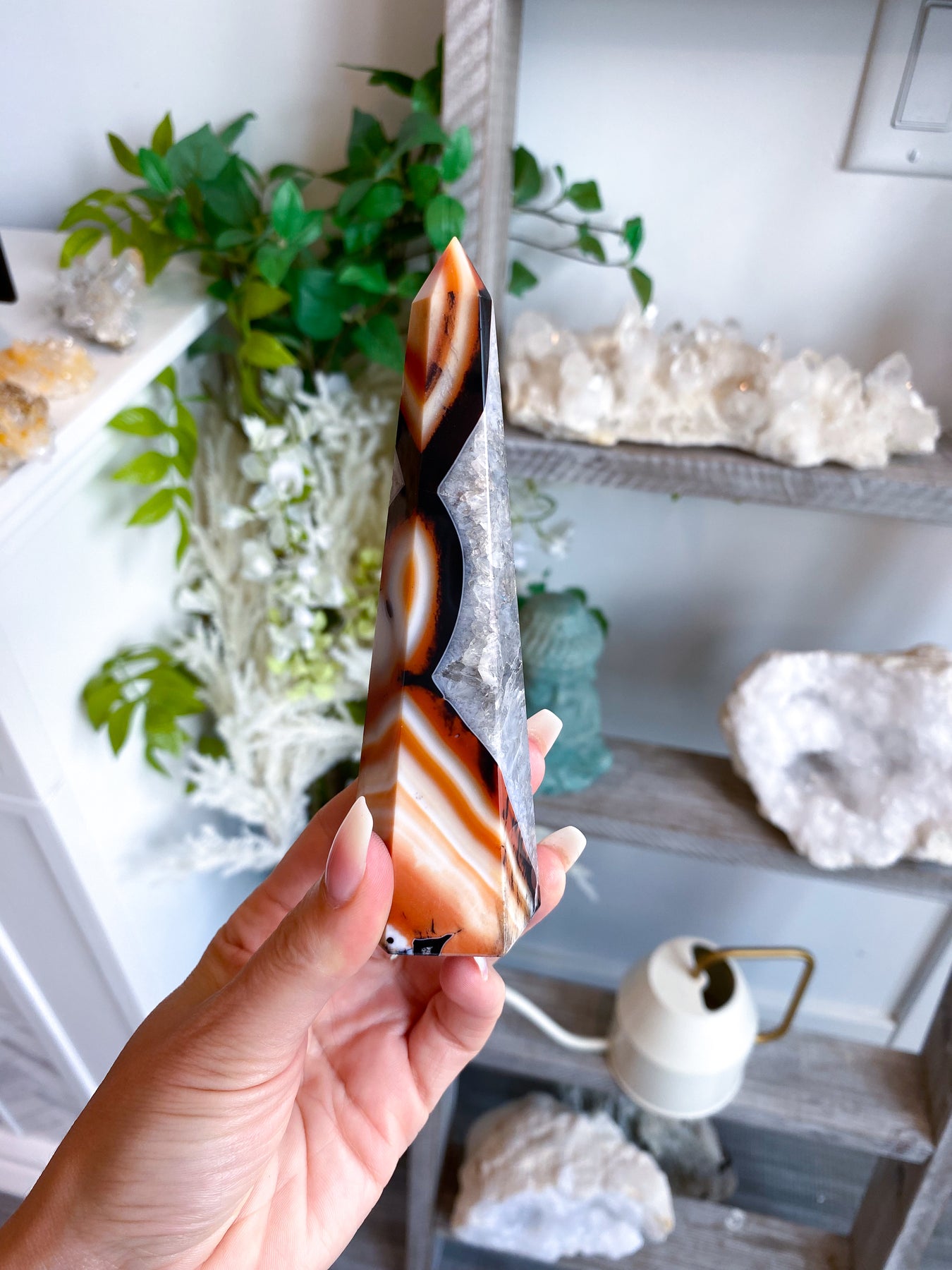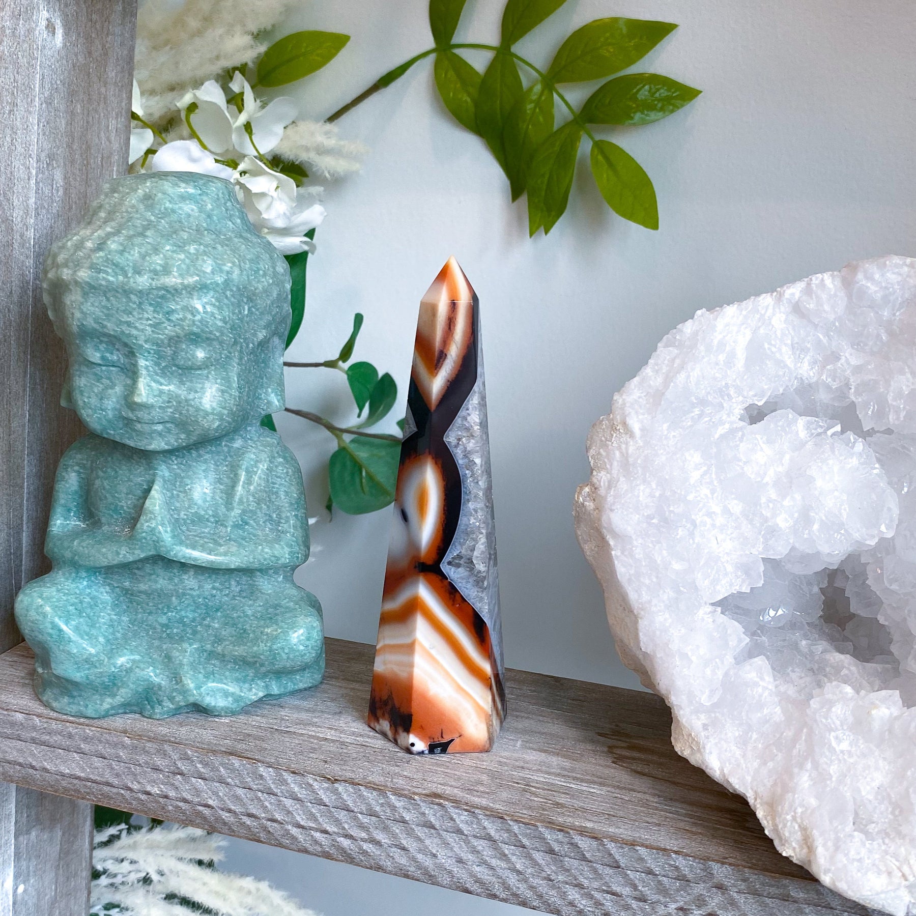 Sardonyx is your go-to ally when you're ready to anchor into your values and move through the world with quiet strength. A blend of onyx and sard, this stone carries the stabilizing energy of the earth with a fiery spark of courage.