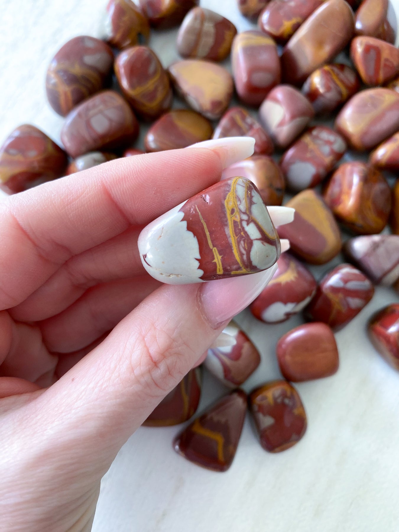 Noreena Jasper, a striking stone from Western Australia, carries the raw energy of the earth, infusing the spirit with passion and movement. It enhances creativity, clears stagnation, and fuels motivation, making it an ideal stone for those seeking renewed inspiration and drive. Connected to the Root and Sacral Chakras, it grounds ambition while awakening the fire of personal transformation. This stone encourages emotional balance, helping to release fears that hinder progress. A companion for growth, Noreena Jasper aligns the mind and body with the cycles of renewal, strengthening resilience and determination.