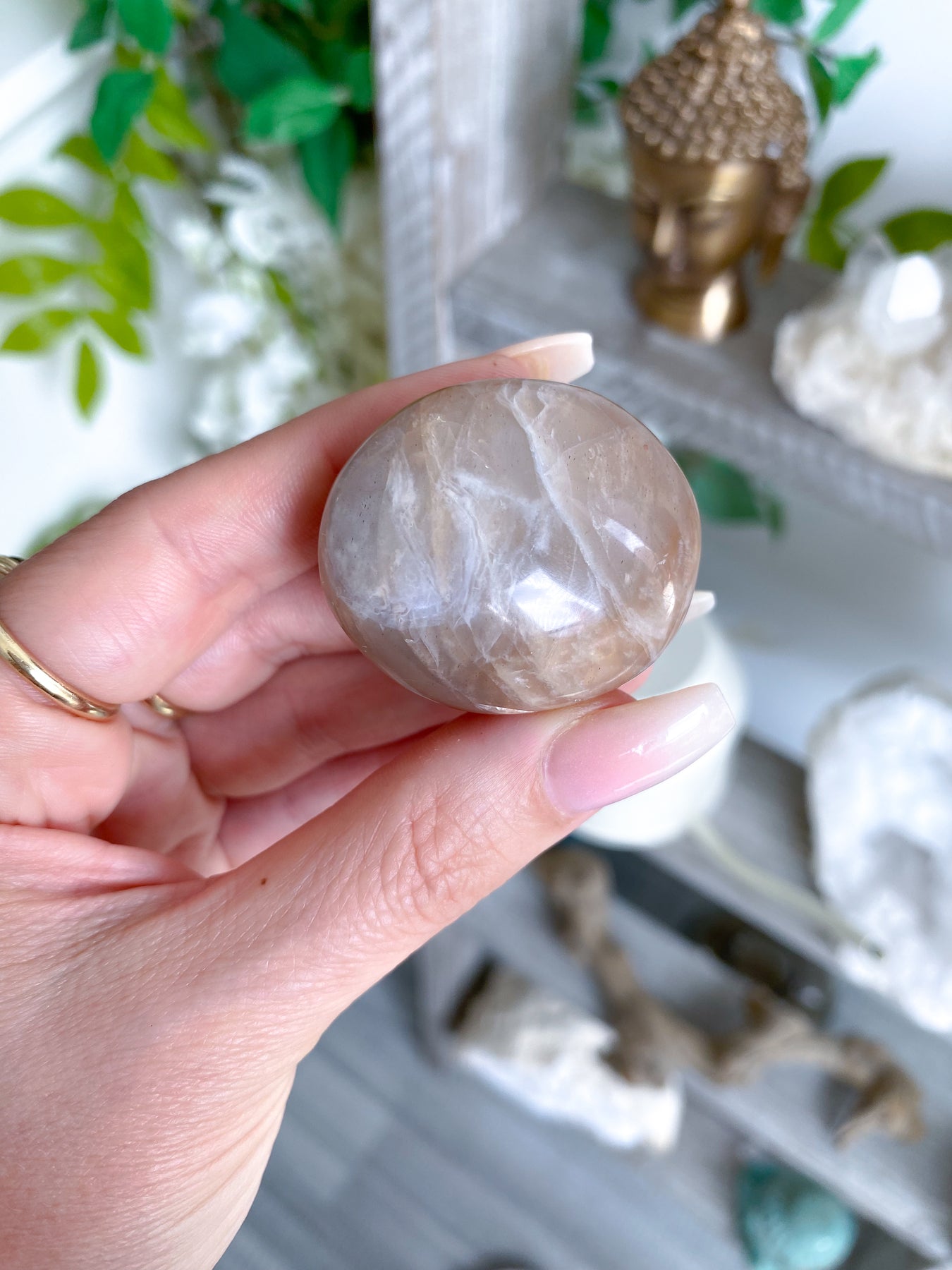 Peach Moonstone carries the gentle, divine feminine energy of Moonstone while offering a unique connection between your heart and personal will, anchored in the solar plexus. This crystal provides the same protective qualities as Moonstone, supporting you as you explore and nurture your creative and loving energies.