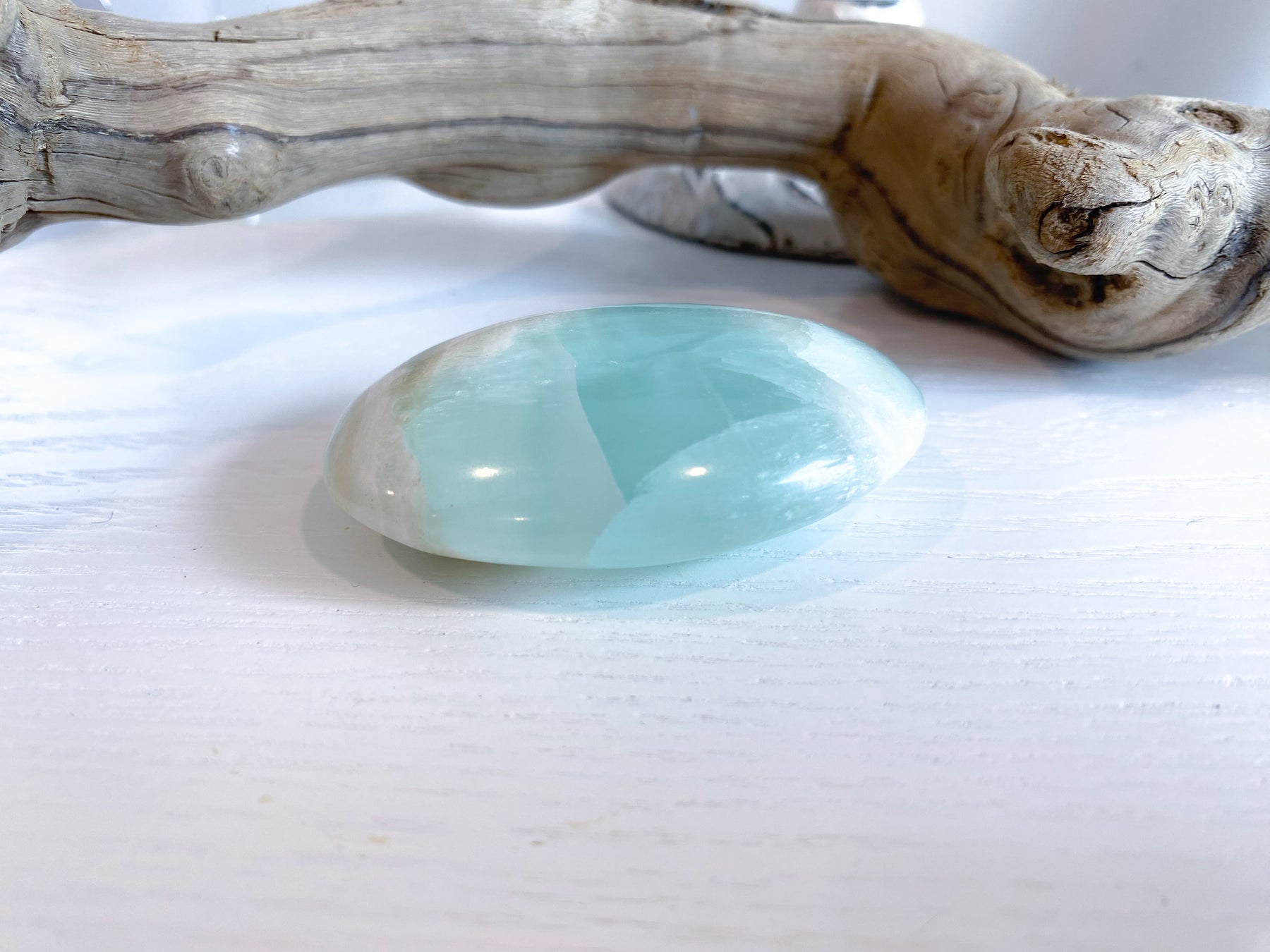 Open your heart chakra center with Sea Green (Pistachio) Calcite, a peaceful gemstone that provides a conduit for insight and appreciation. It is a stone that welcomes our heart's thoughts and teaches us patience. Wisdom and enlightenment come from meditating with green calcite, as it helps us relate to the bigger world around us. There is a lovely and giving energy that comes from this gemstone and it is a natural, cleansing energy that is great as a soothing balm. Sea Green Calcite is also known as Pistachio Calcite. Green Pistachio Calcite facilitates physical healing by clearing negative emotions & encouraging relaxation. This stones green vibration opens your sacred heart to receive love from the spiritual realm & encourages tolerance, compassion, and understanding.