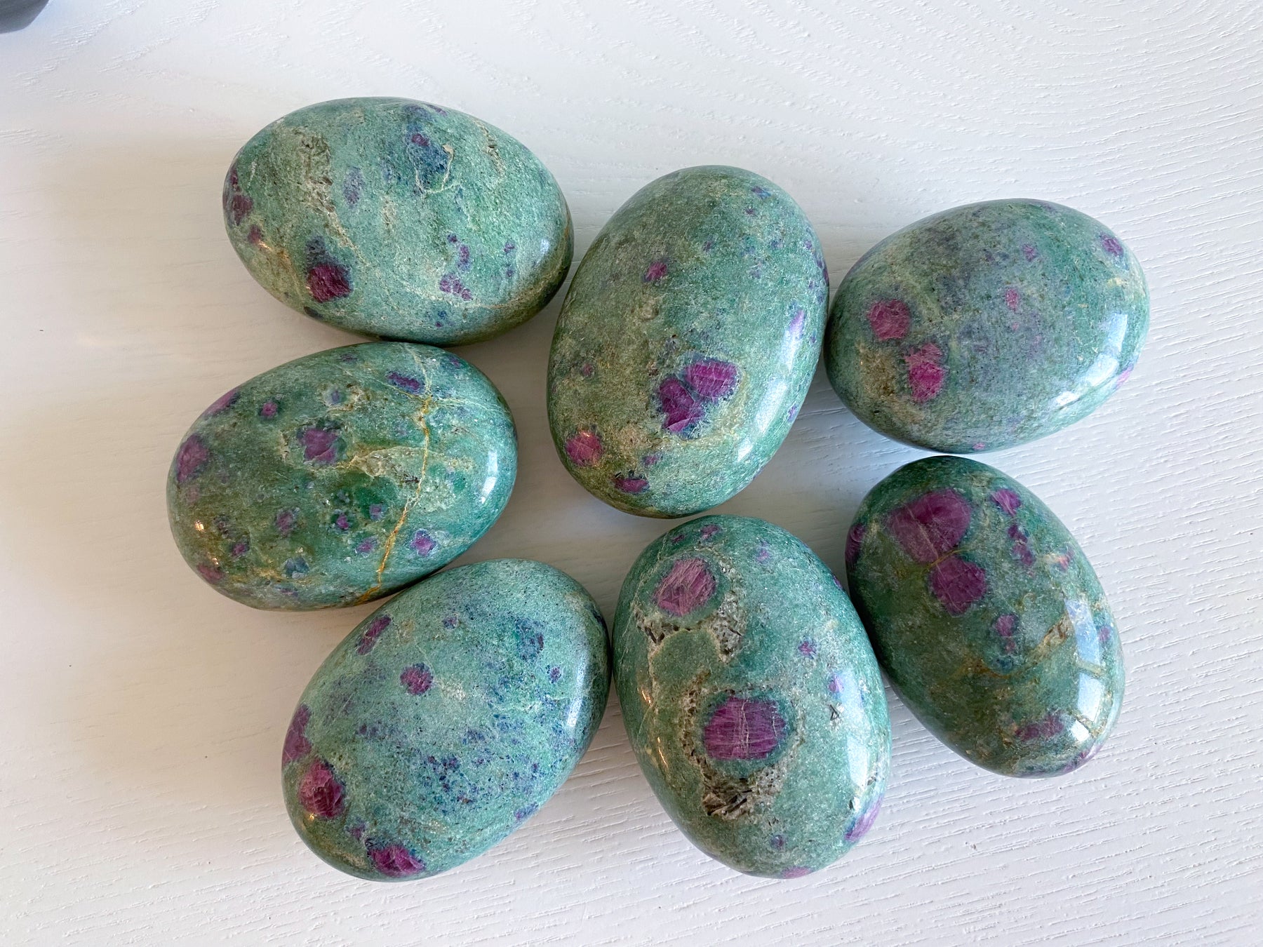 Get one per order, a Ruby Fuchsite Palm stone. Mix of green, blue and ruby.