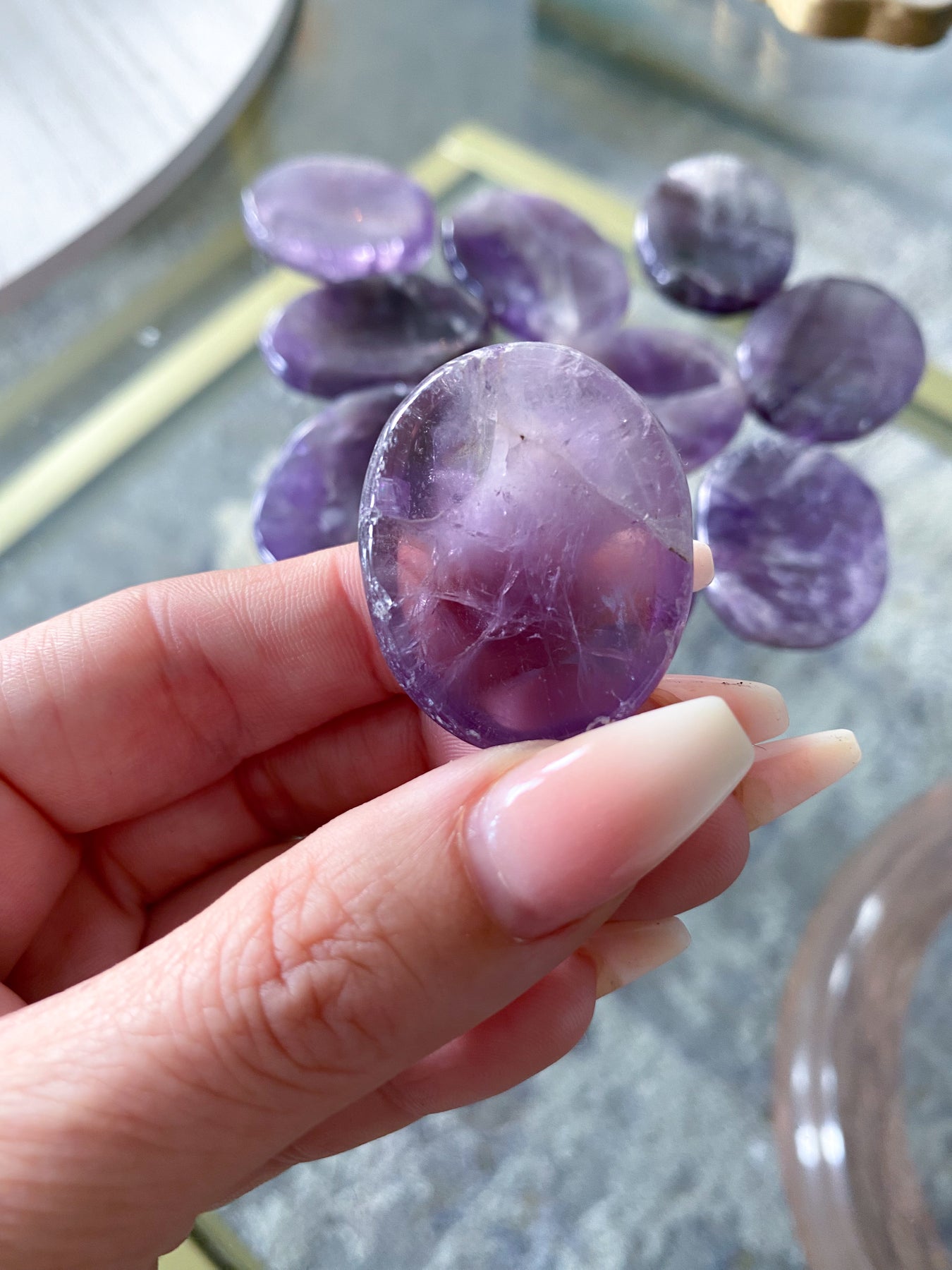 ★★★★★Absolutely stunning. My new favorite palm stone. Brings me ínstense calming and peaceful sensations.