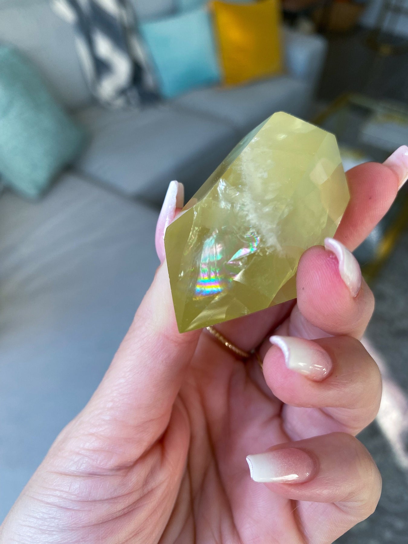 Small Lemon Topaz Double Terminated Wand w/ Rainbows - Yellow Topaz Point - Healing Energy - Protection - 2.5 inches - Yellow Topaz Crystal