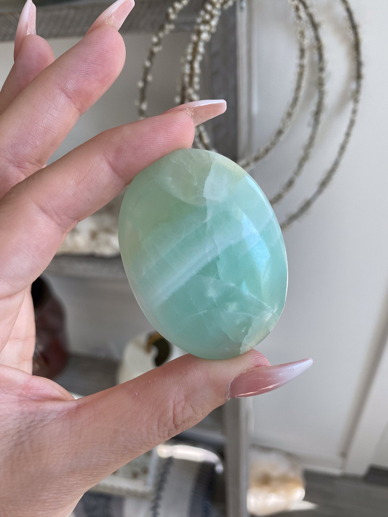 Small Pistachio Green Calcite Palm Stone - Get exact stone - Increase Patience - Self Love - Heart Chakra