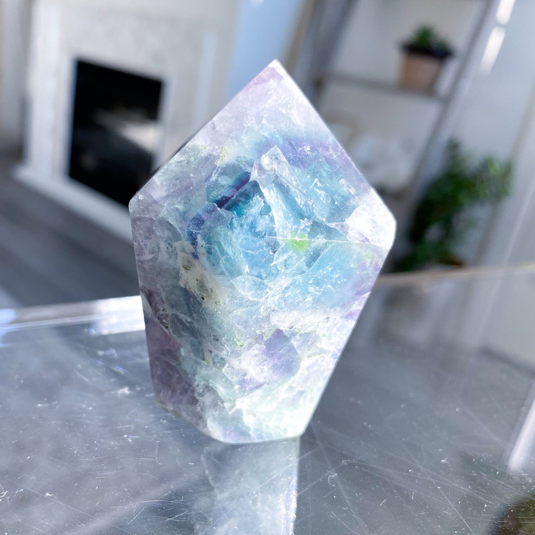 Fluorite cleanses and stabilizes the aura. It absorbs and neutralizes negative energy and stress. An excellent learning aid, Fluorite increases our powers of concentration, self-confidence and helps us in decision-making. It encourages positivity, balances the energies, and improves balance and coordination, both physically and mentally. Fluorite is said to absorb and neutralize negative vibrations. It makes one more receptive to the vibrations of other stones. Fluorite should be kept in every room of the home. Fluorite is known as the "Genius Stone". Fluorite heightens mental abilities, assisting in rapid organization and processing of information and can bring mental clarity and stability to an otherwise chaotic situation. Fluorite absorbs negative energies from the environment and is effective at Auric and Chakra cleansing. Fluorite can also shield the user from psychic manipulation. Due to its powerful ability to absorb negative energies, Fluorite should be cleared often.