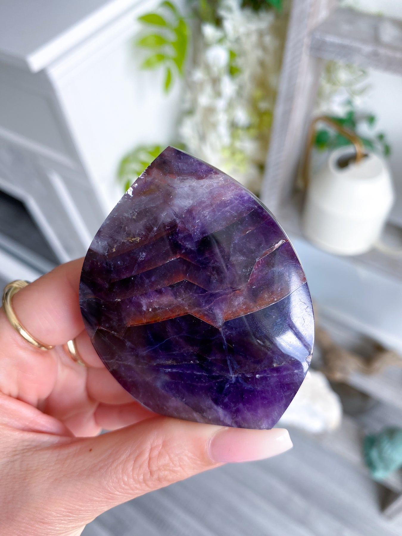Invoke St. Germain with a purple flame amethyst. This piece is perfect for your spiritual healing work with the ancient ascended master.