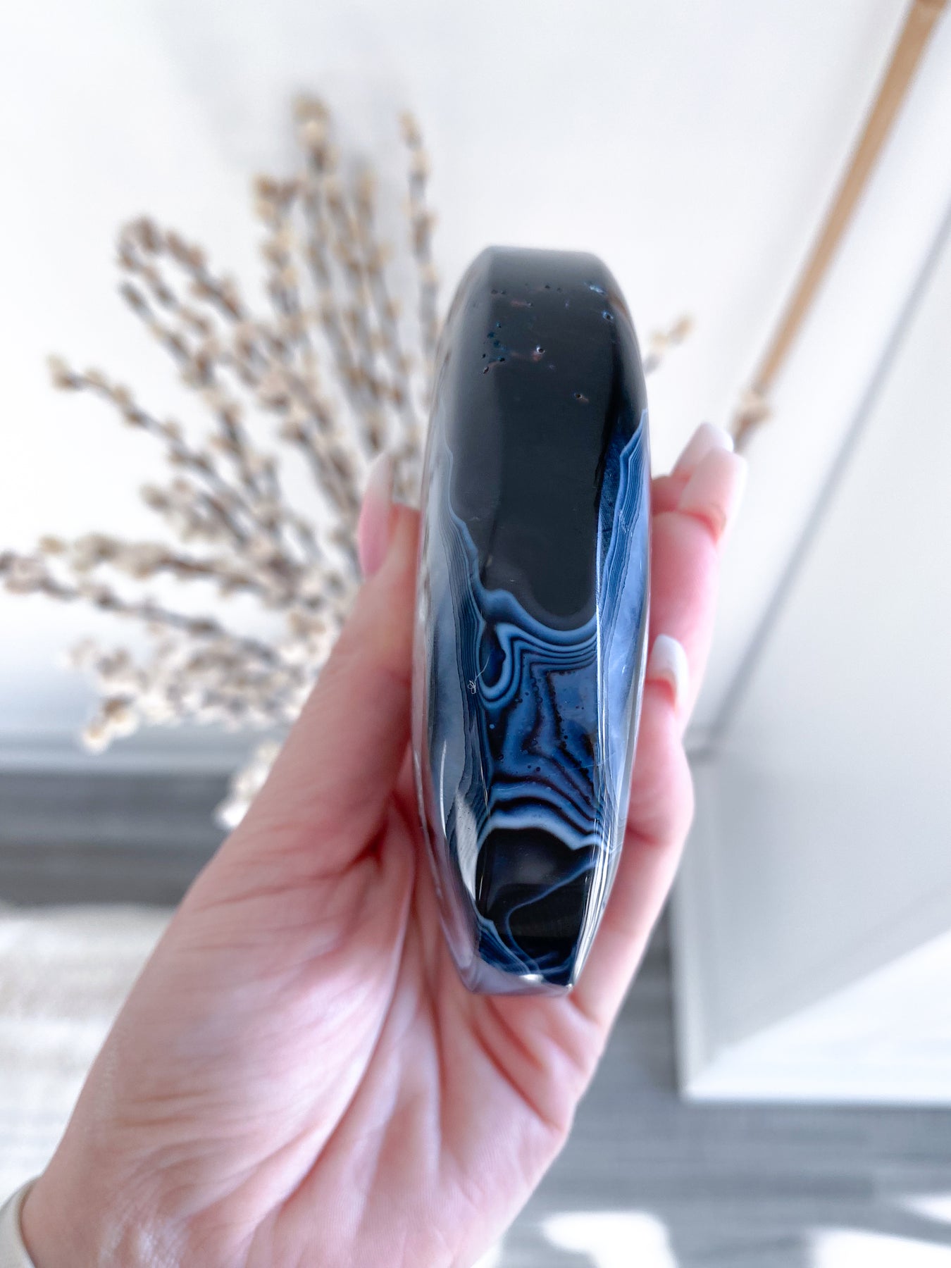 Get exact item listed, a very large black agate moon.