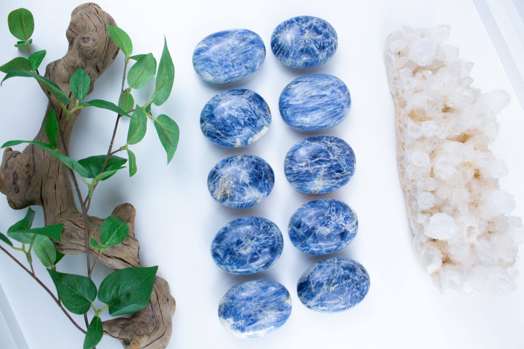 Get one per order! Blue Kyanite palm stone. 170-200 grams each.